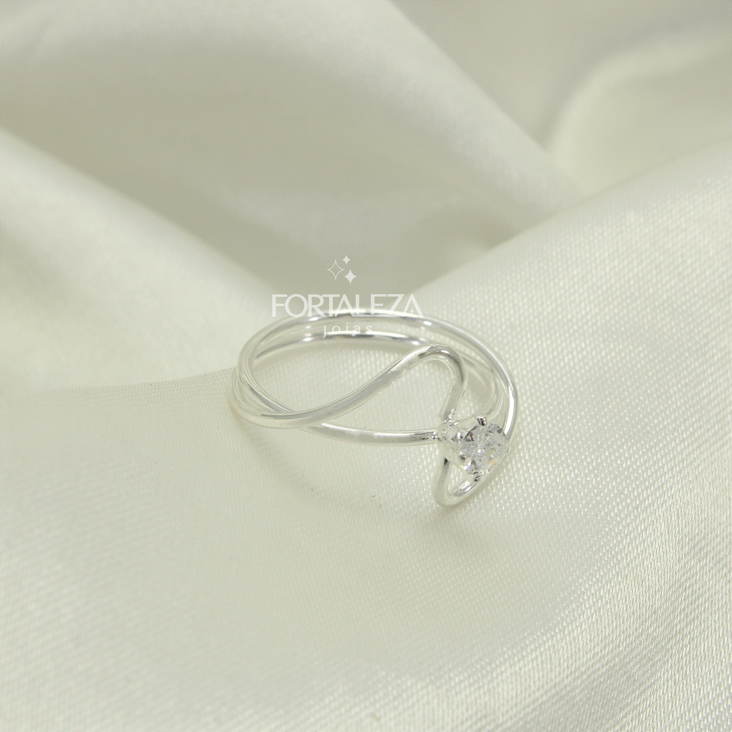 Anel com Design Torcido e Detalhe de Zircônia Cristal Banhado a Prata
