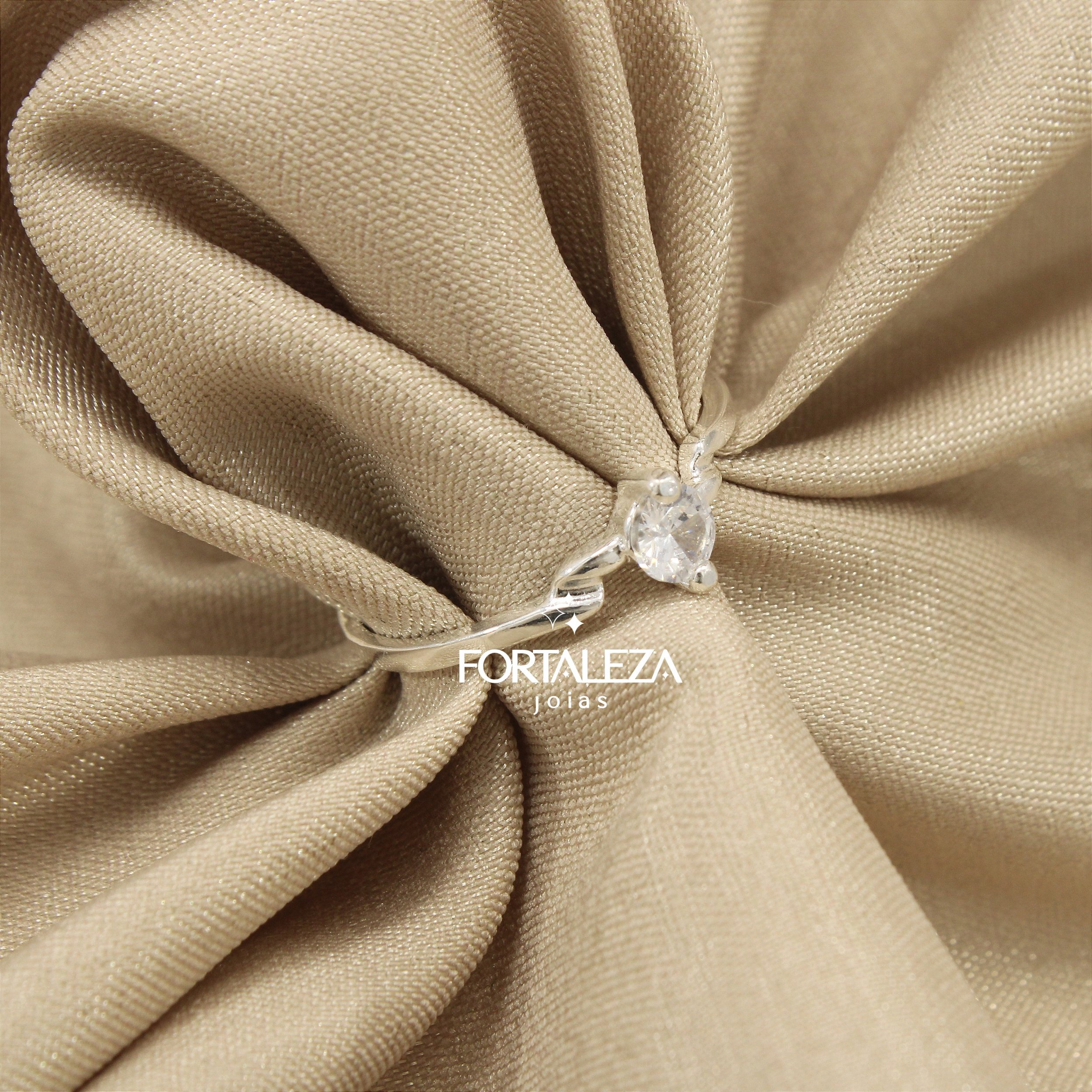 Anel Solitário com Zircônia Cristal Banhado a Prata
