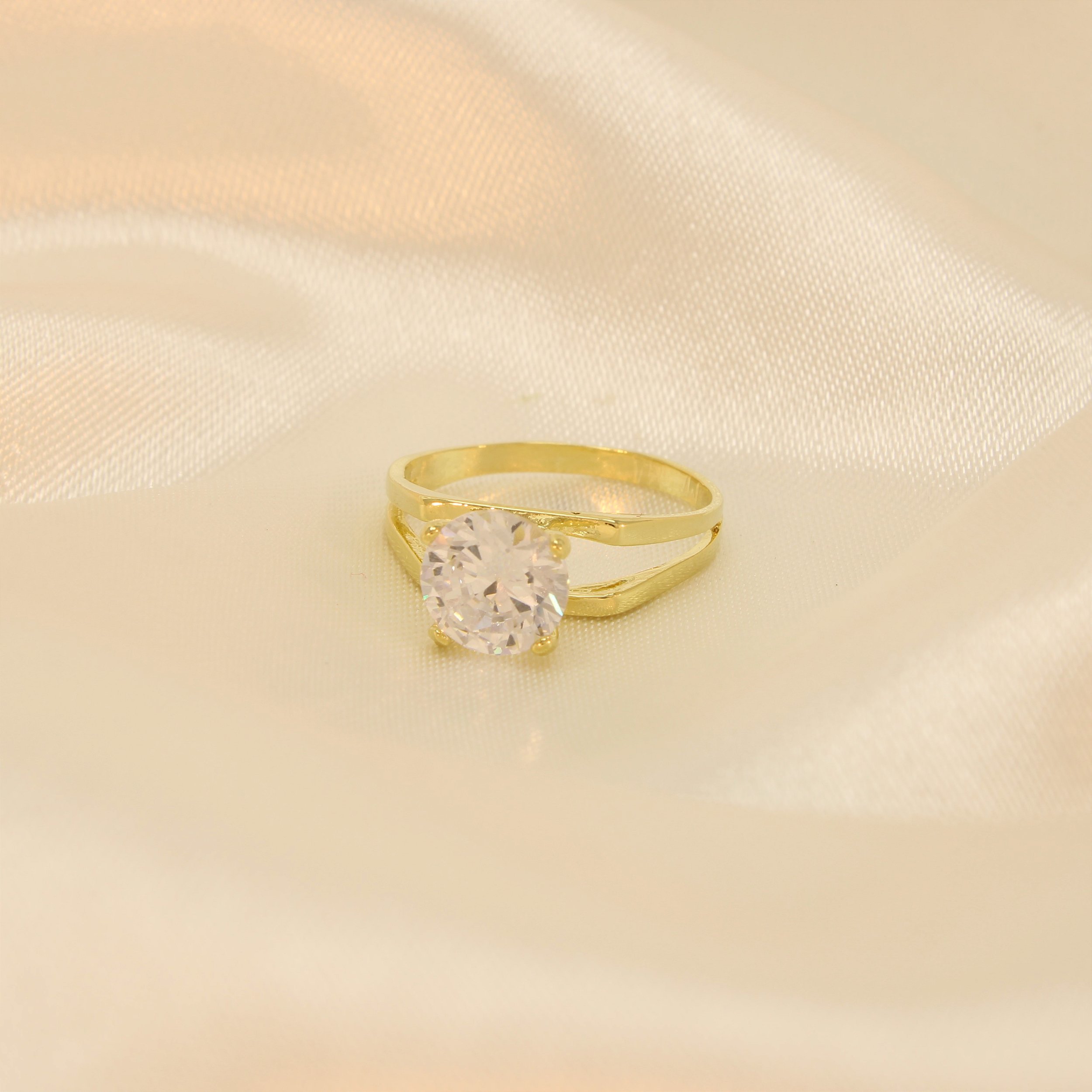 Anel Vazado com Zircônia Cristal Folheado a Ouro 18k