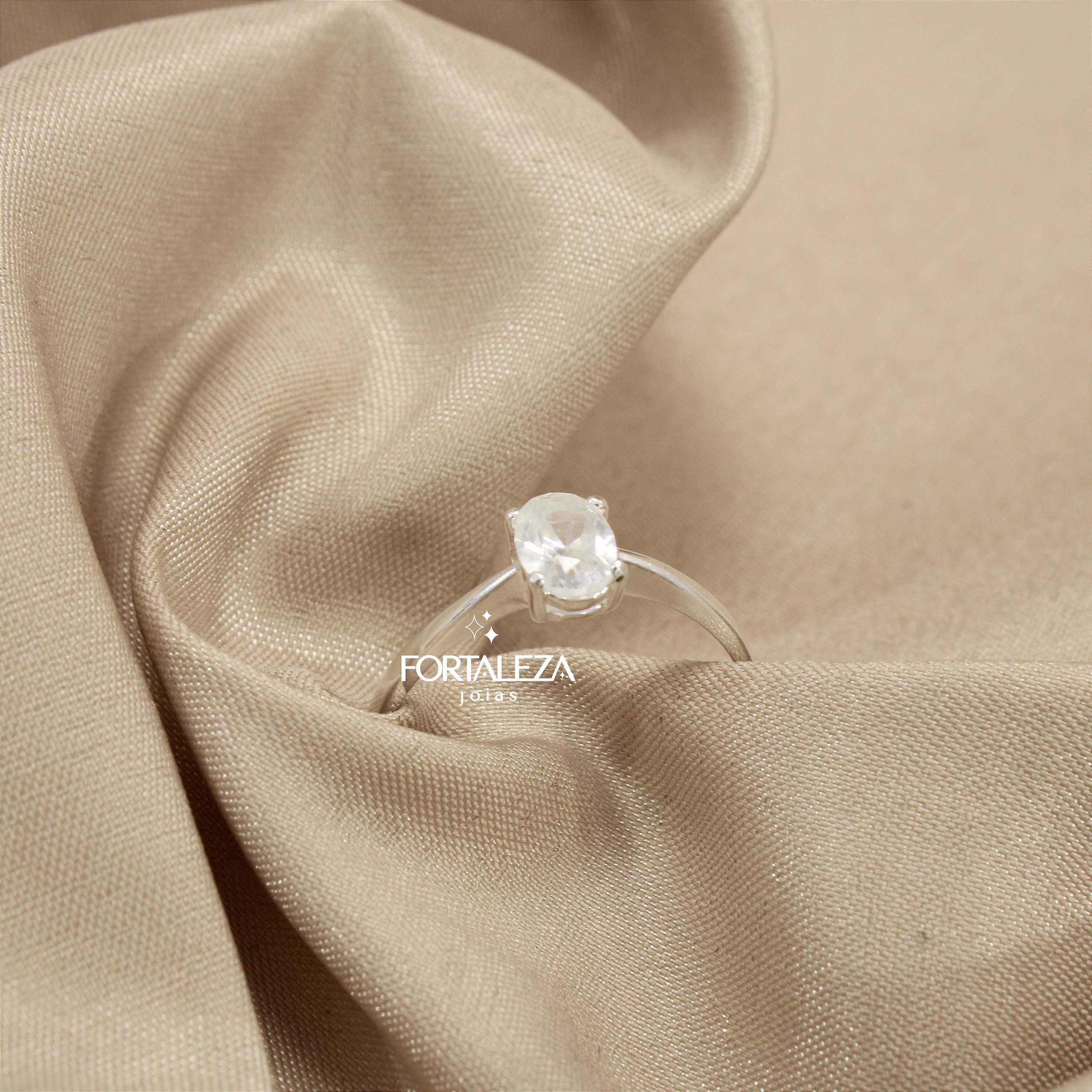 Anel Solitário com Zircônia Cristal Banhado a Prata