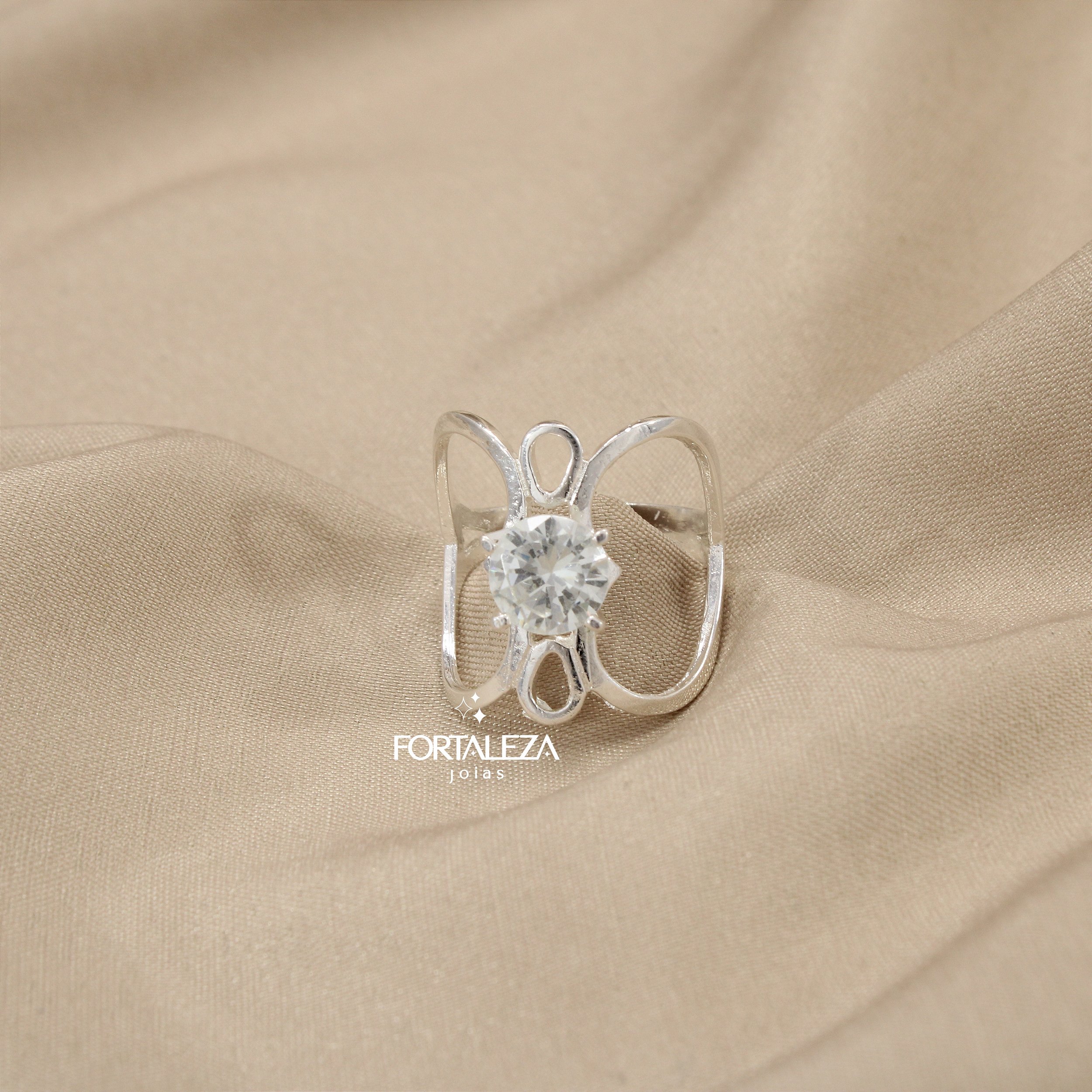 Anel com Detalhe de Coração e Zircônia Banhado a Prata