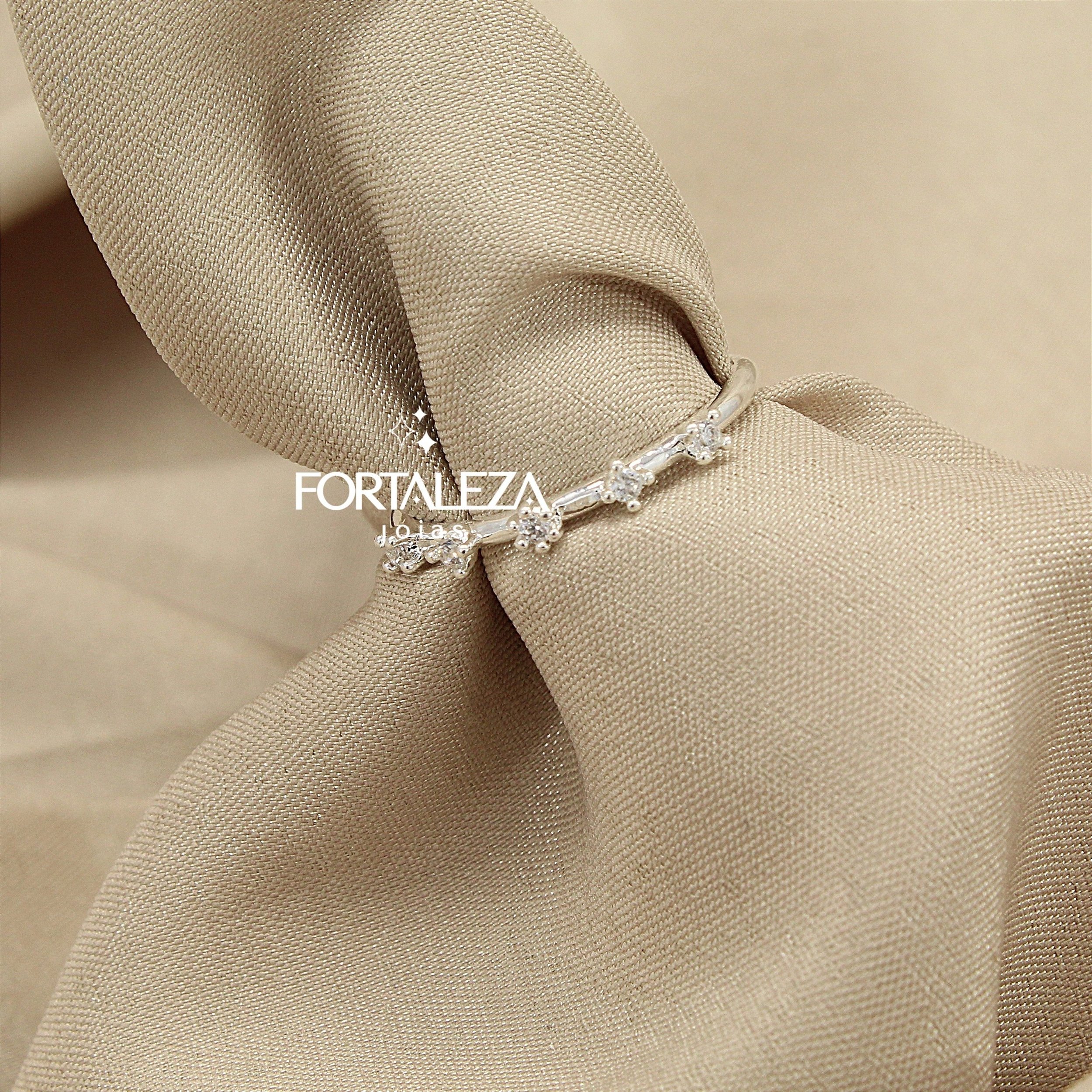 Anel com Detalhes de Zircônia Cristal Banhado a Prata