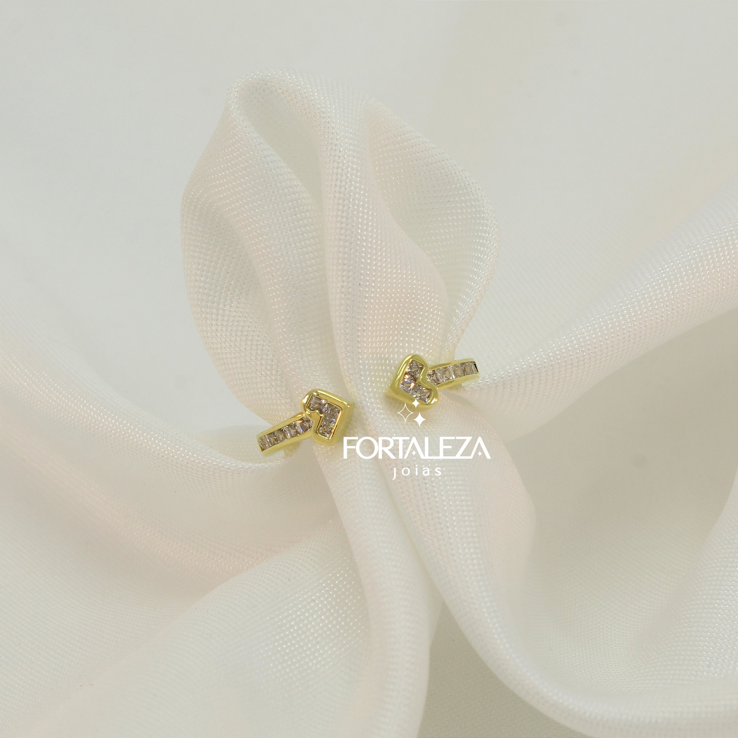 Anel Regulável com Corações Cravejado em Zircônia Cristal Banhado a Ouro 18k