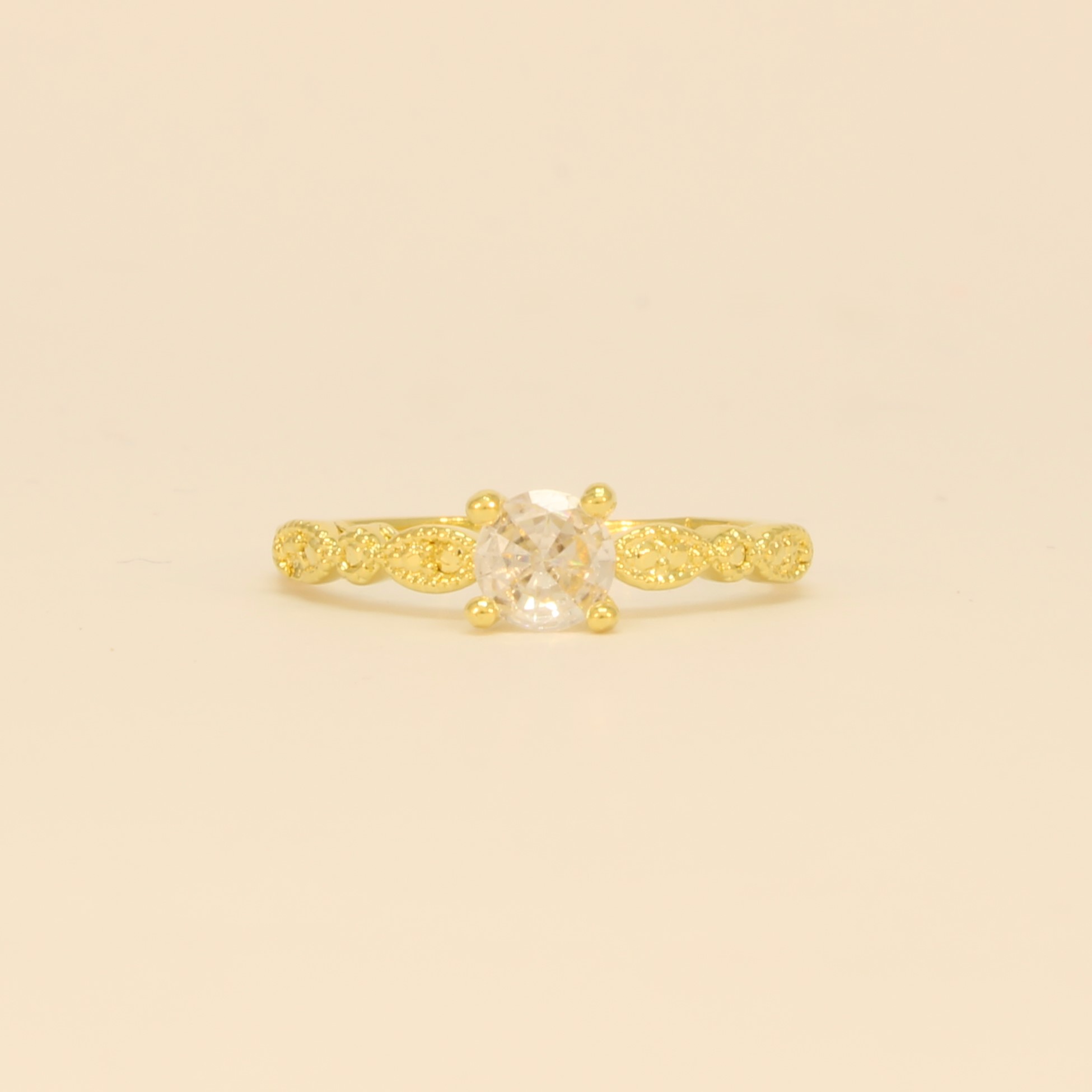 Anel Trabalhado com Zircônia Cristal Folheado a Ouro 18k