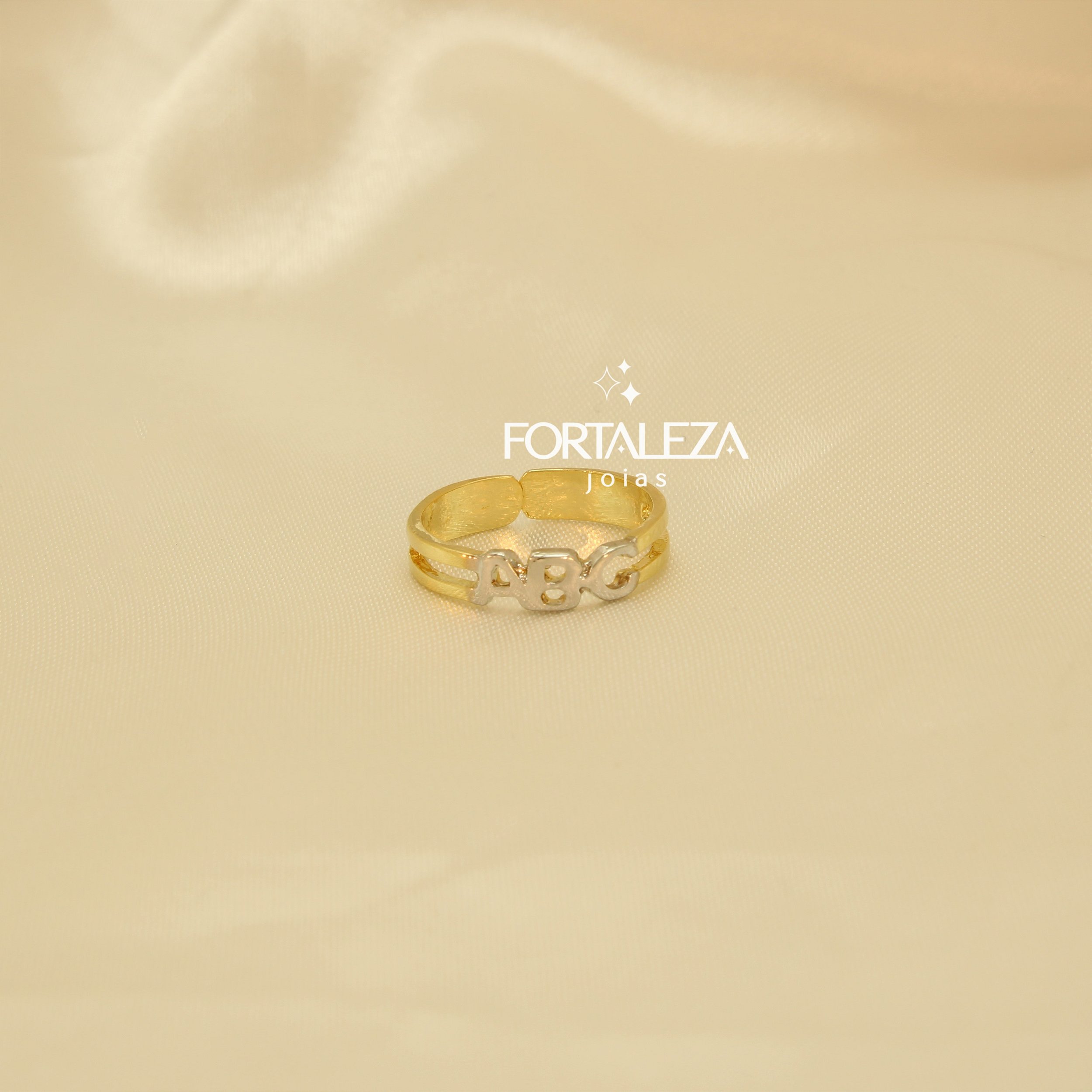 Anel ABC Regulável Banhado a Ouro 18k e Ródio