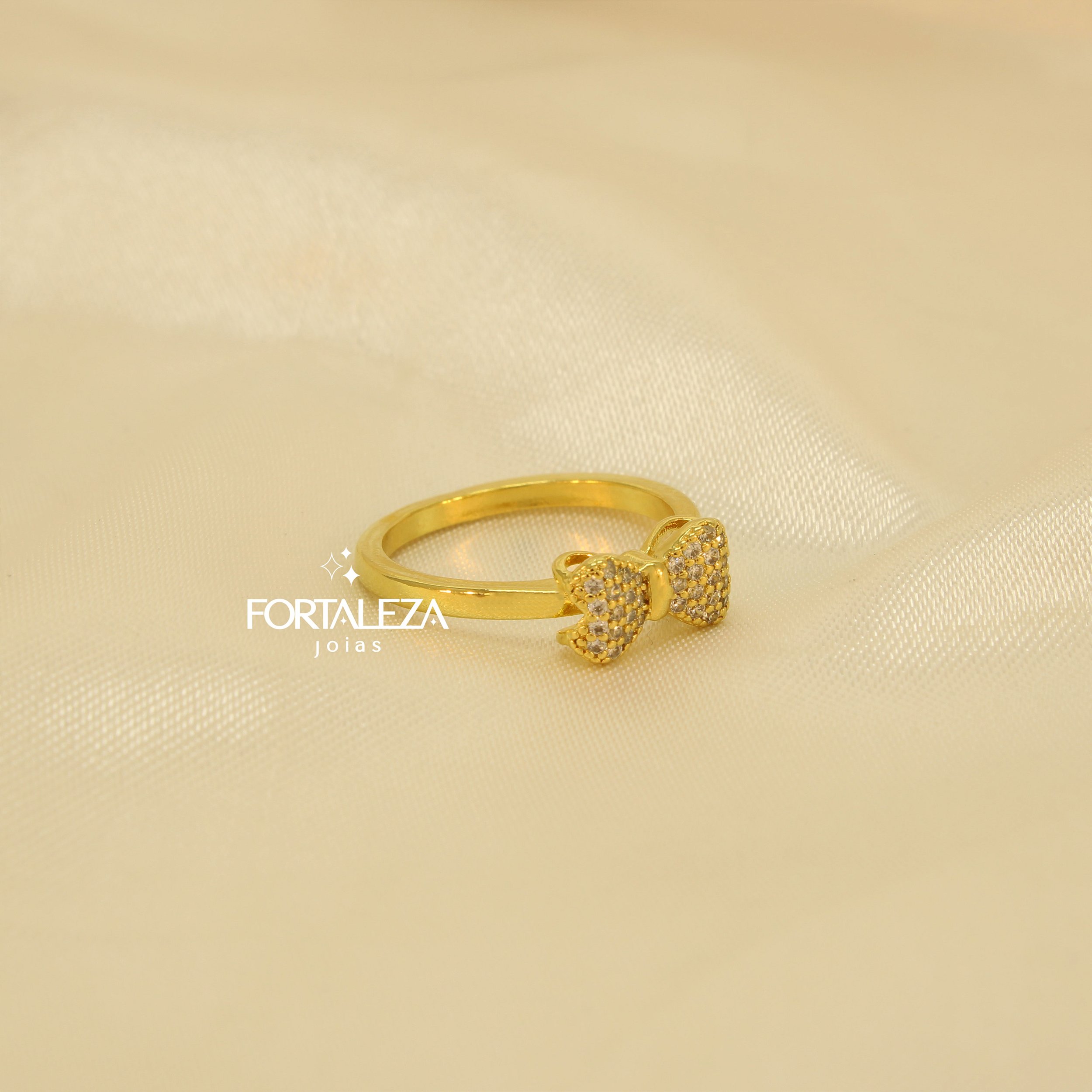Anel com Design de Laço Cravejado em Zircônia Cristal Banhado a Ouro 18k