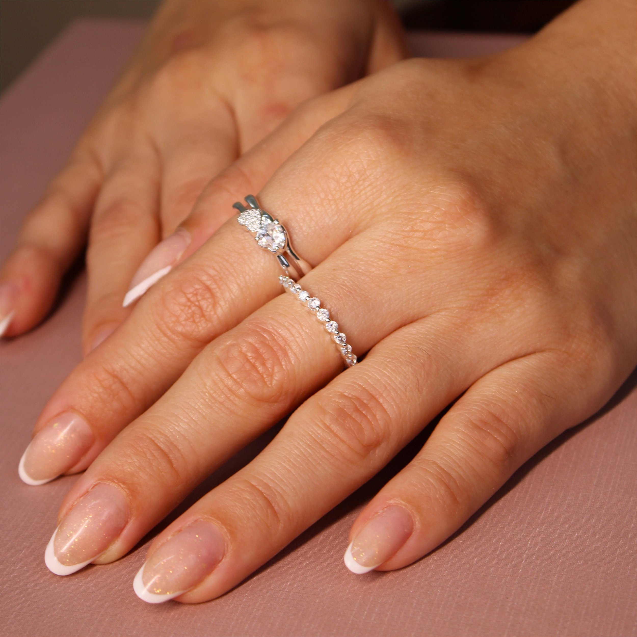 Anel Meia Aliança Cravejado em Zircônia Cristal Banhado a Prata 925