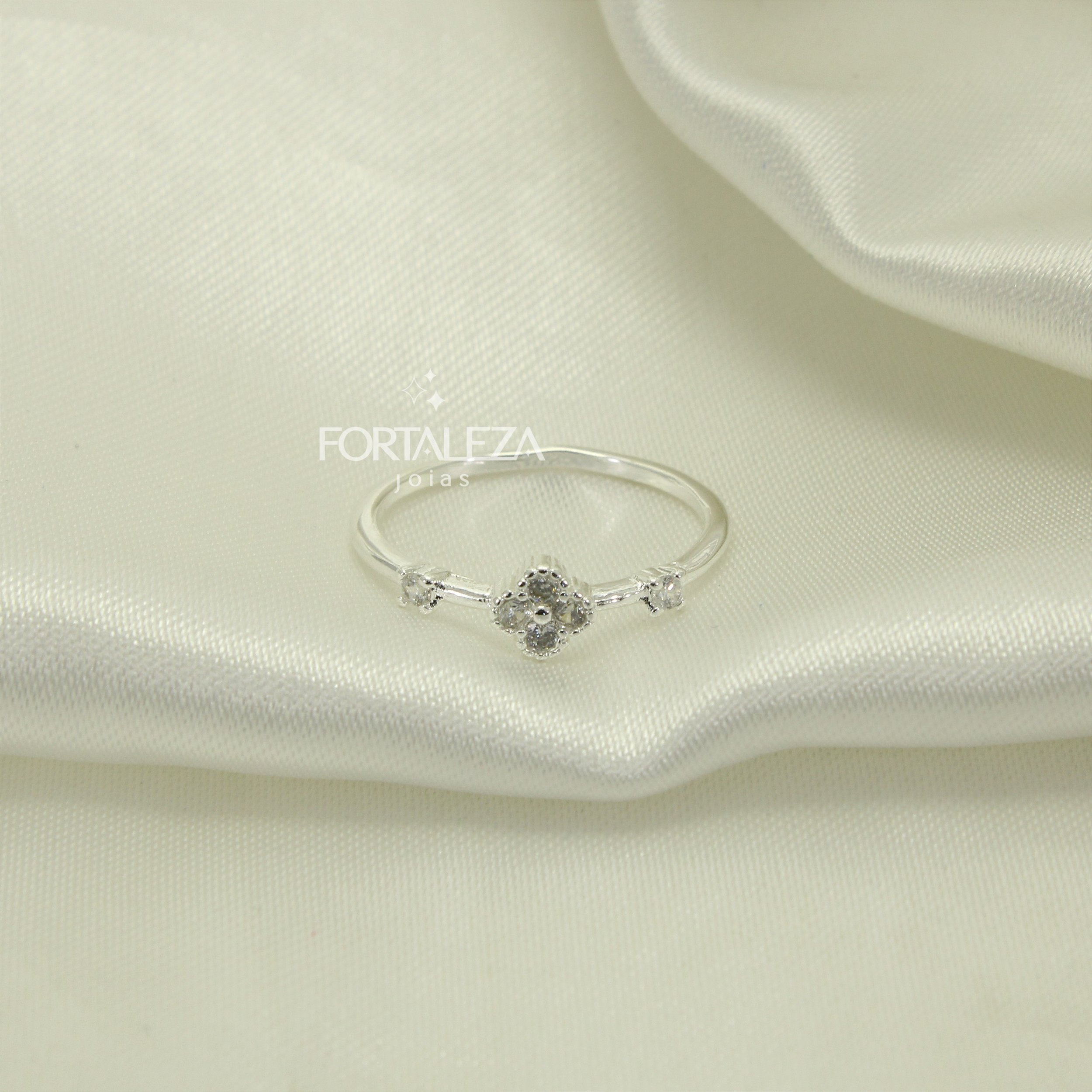 Anel de Trevo com Zircônia Cristal Banhado a Prata 925