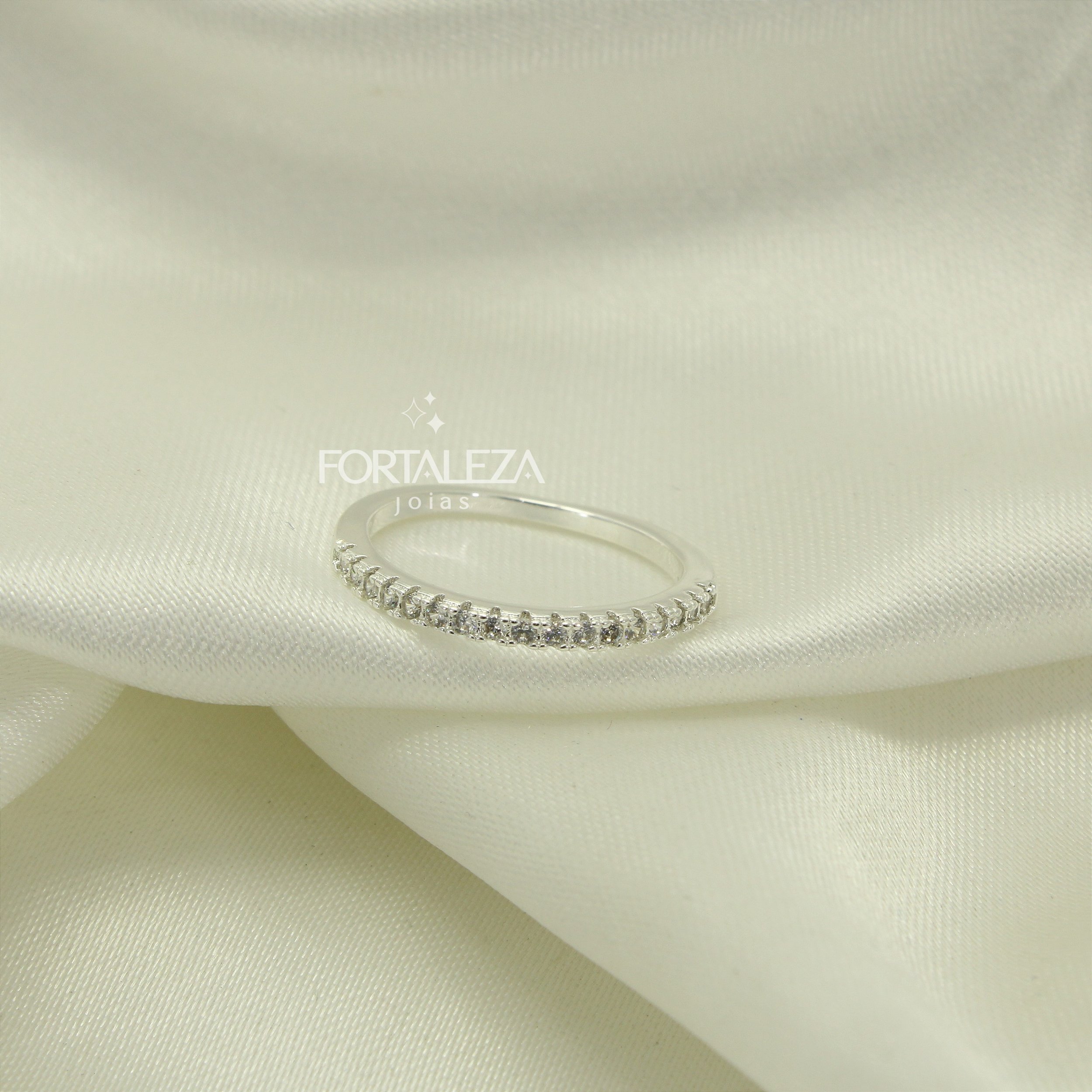 Anel Aparador Cravejado em Zircônia Cristal Banhado a Prata 925
