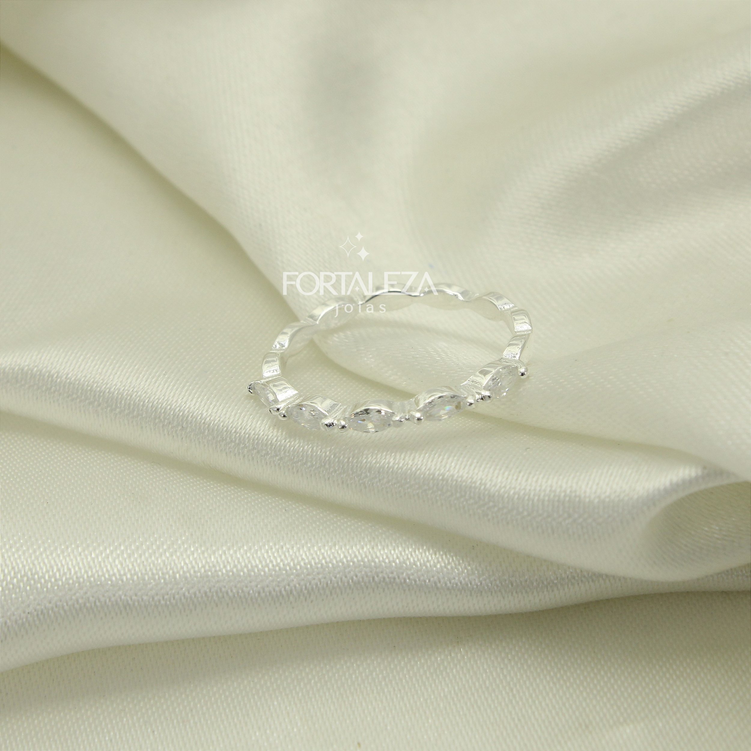Anel Trabalhado e Cravejado em Zircônia Cristal Banhado a Prata 925