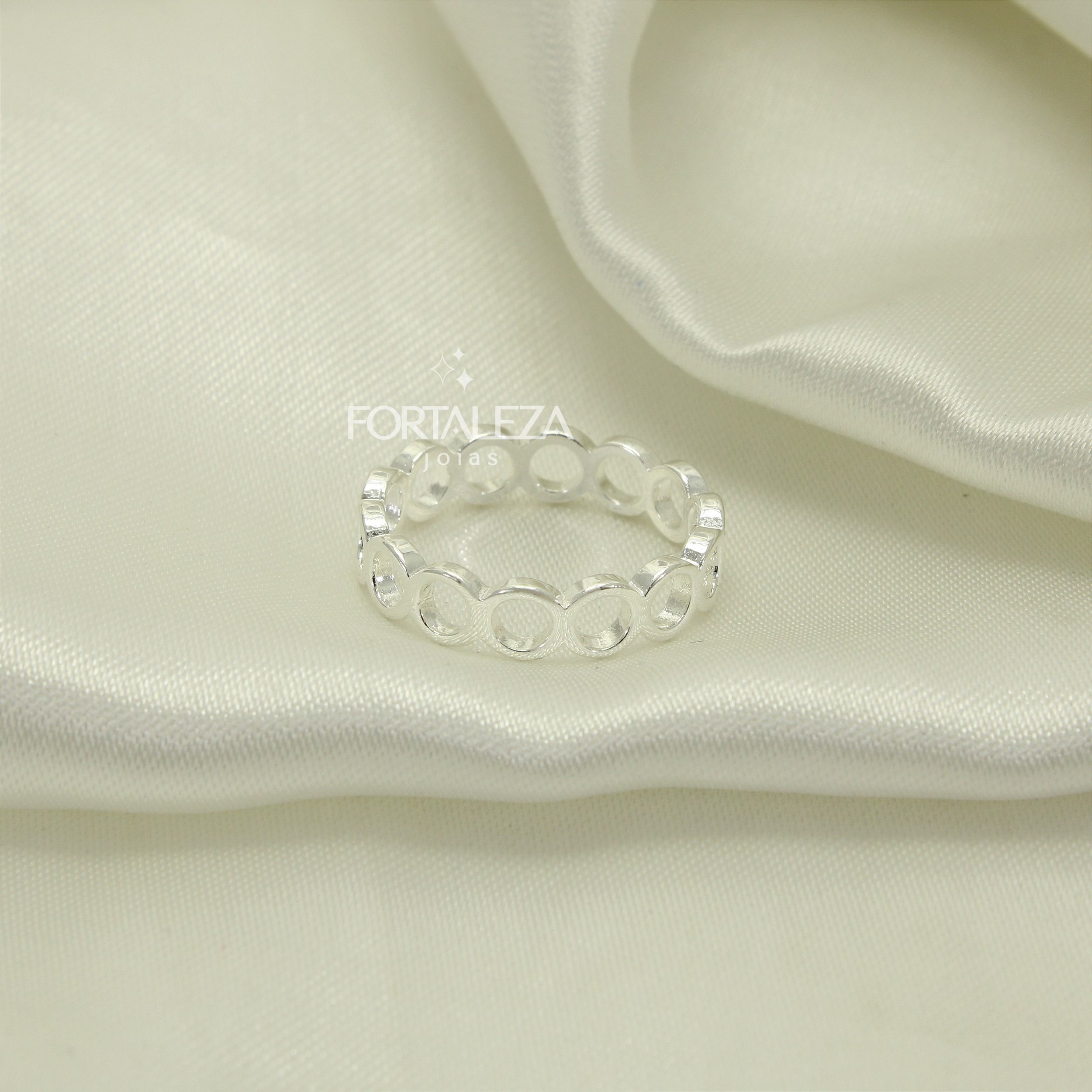 Anel com Design de Elos Vazados Banhado a Prata 925
