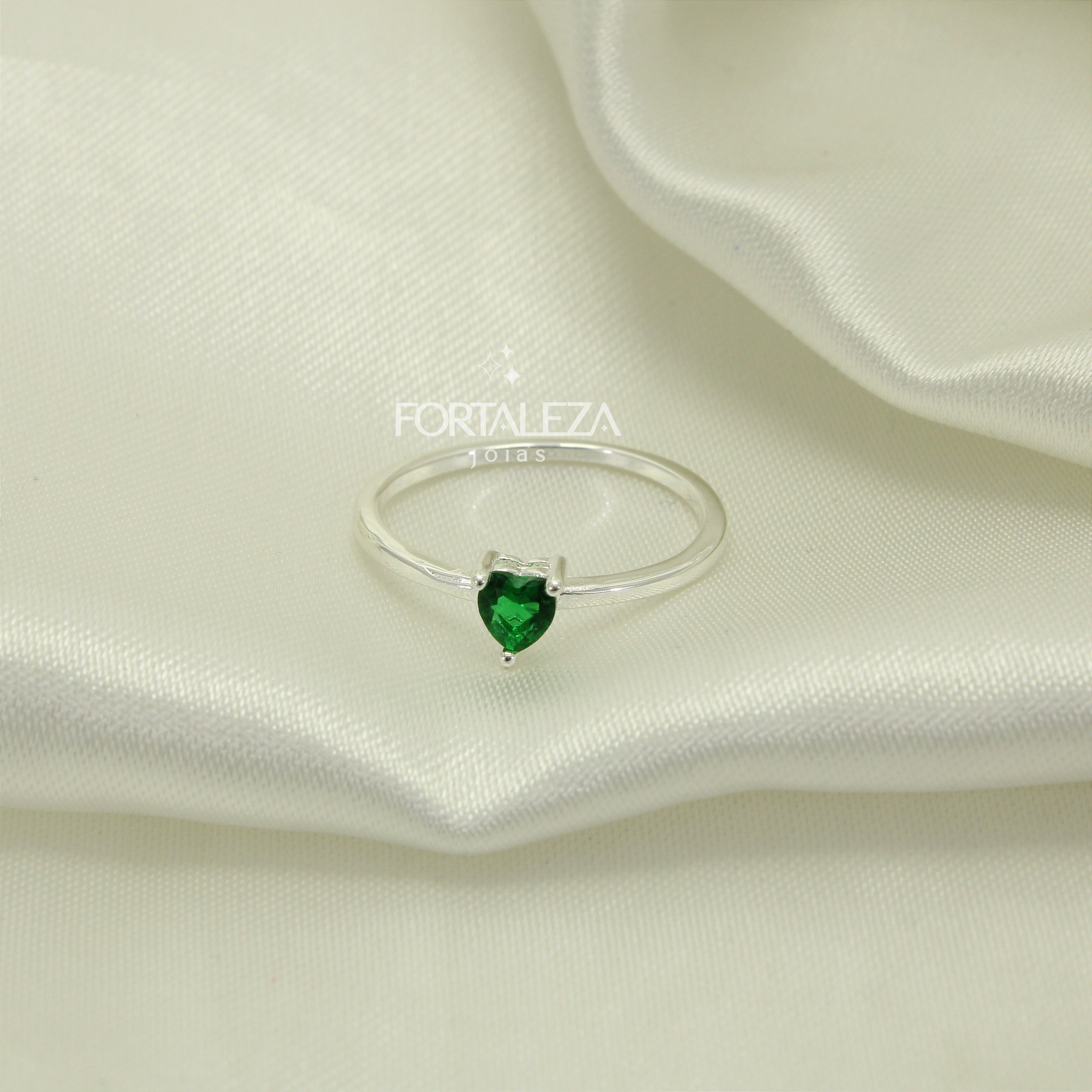 Anel Solitário com Zircônia Esmeralda Banhado a Prata 925