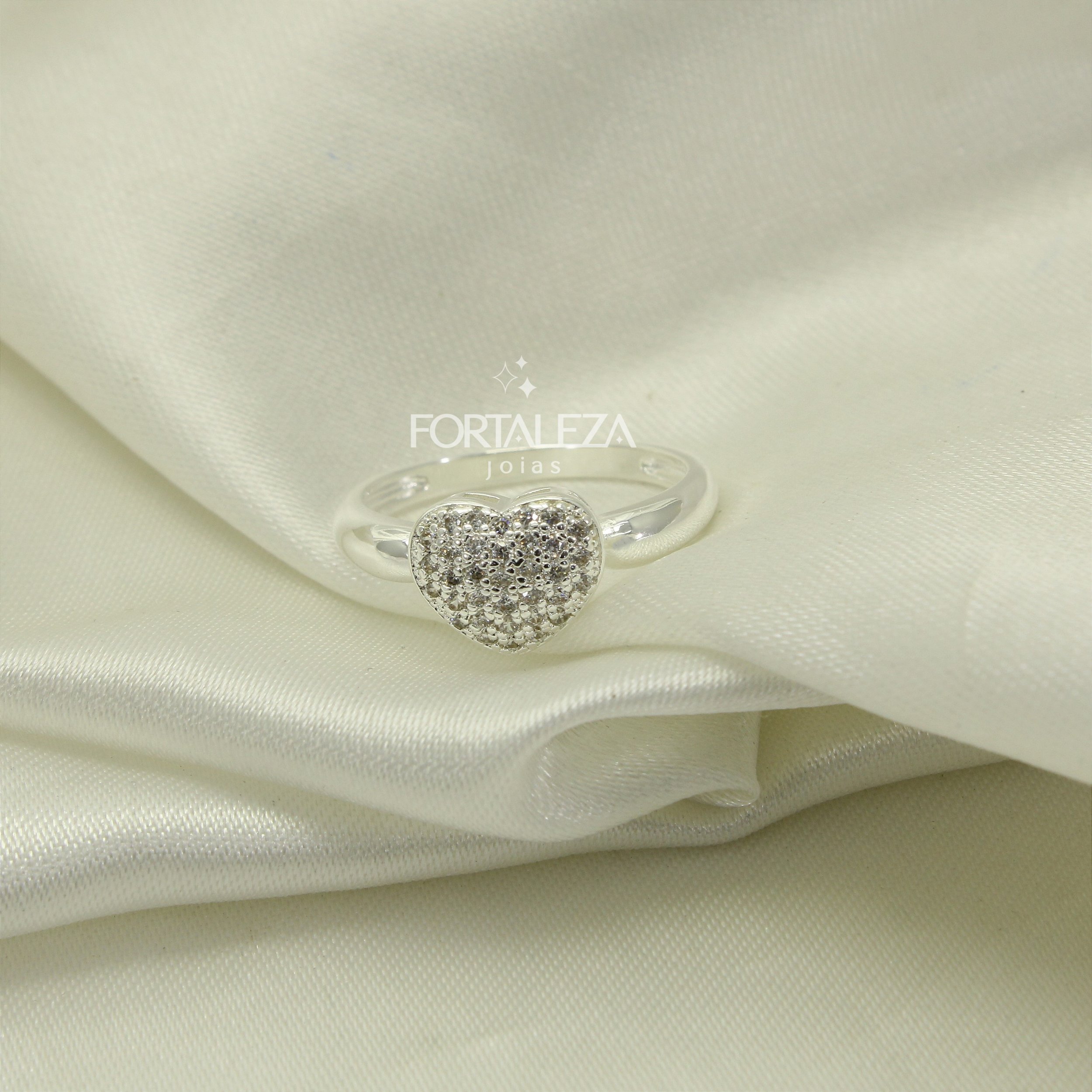 Anel Coração Cravejado em Zircônia Cristal Banhado a Prata 925