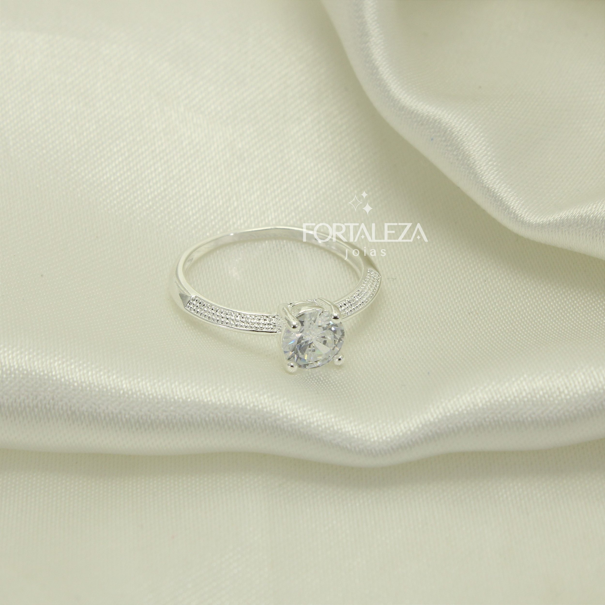 Anel Solitário com Zircônia Cristal Banhado a Prata 925