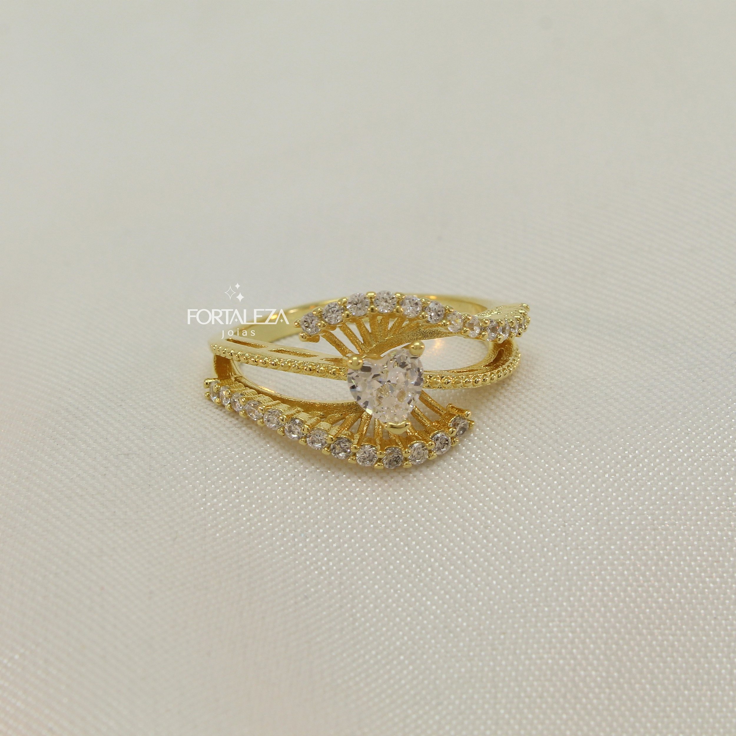 Anel Coração Trabalhado em Zircônia Cristal Banhado a Ouro 18k