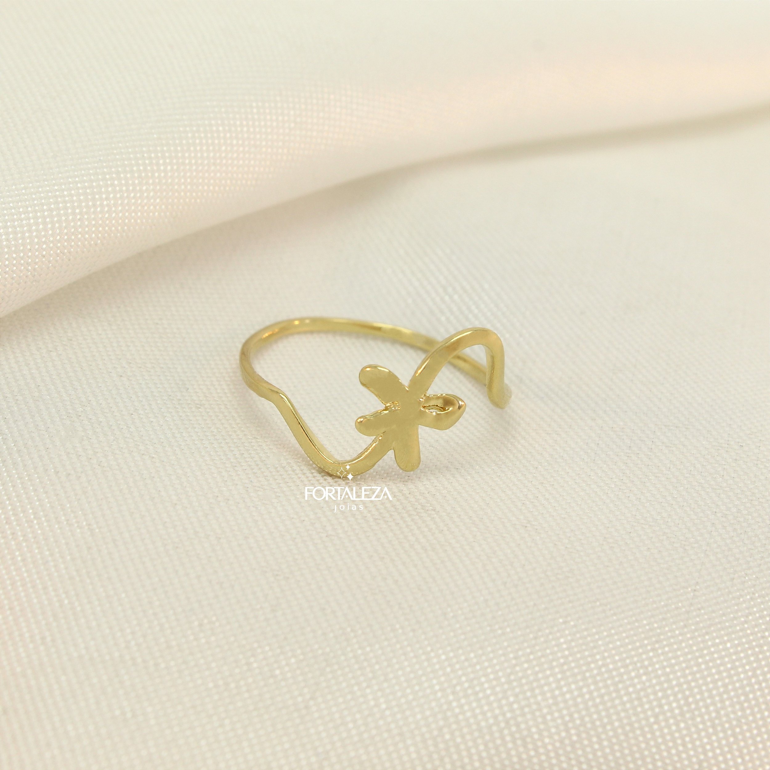 Anel de Aro Fino com Design de Laço Banhado a Ouro 18k