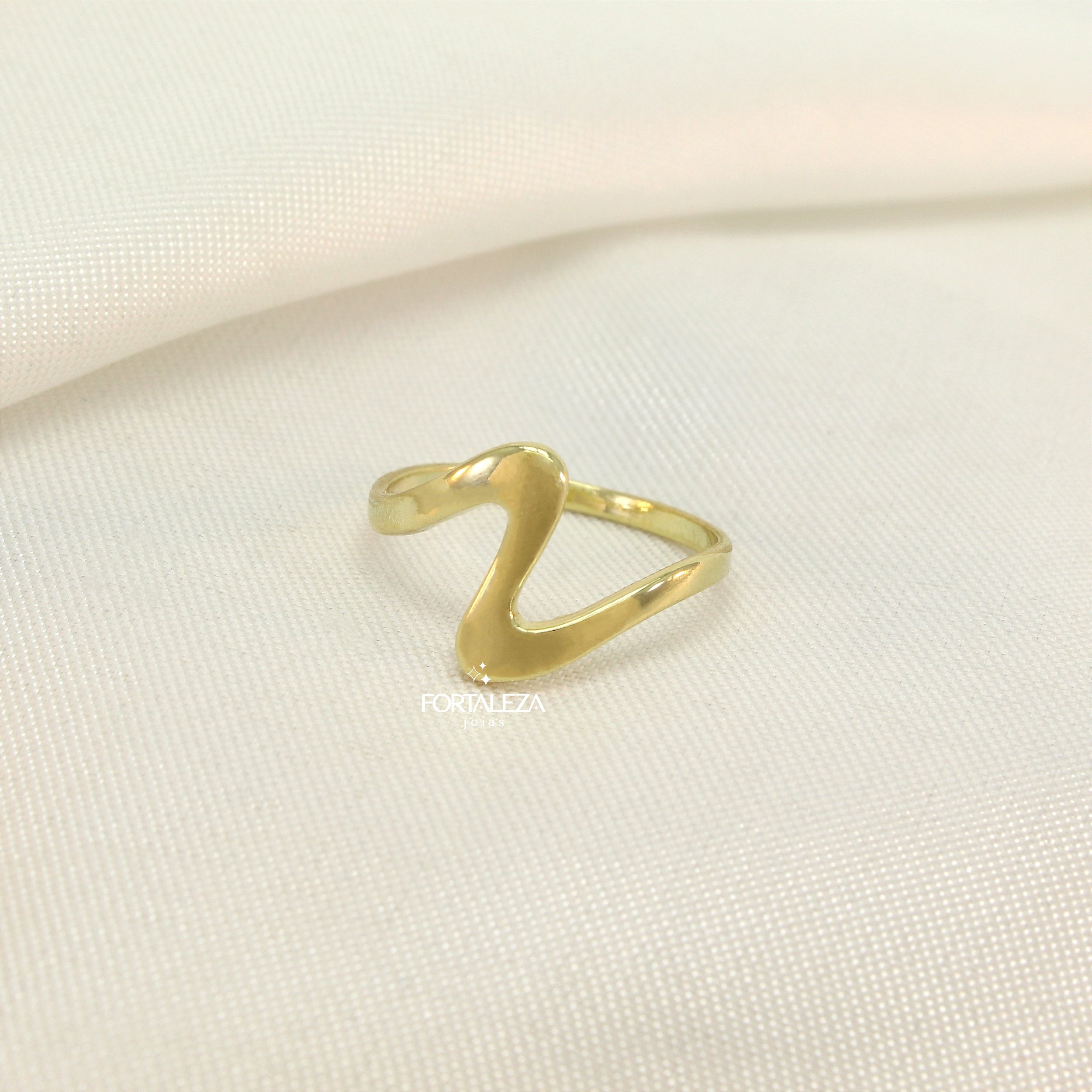 Anel de Aro Fino com Detalhe Ondulado Banhado a Ouro 18k