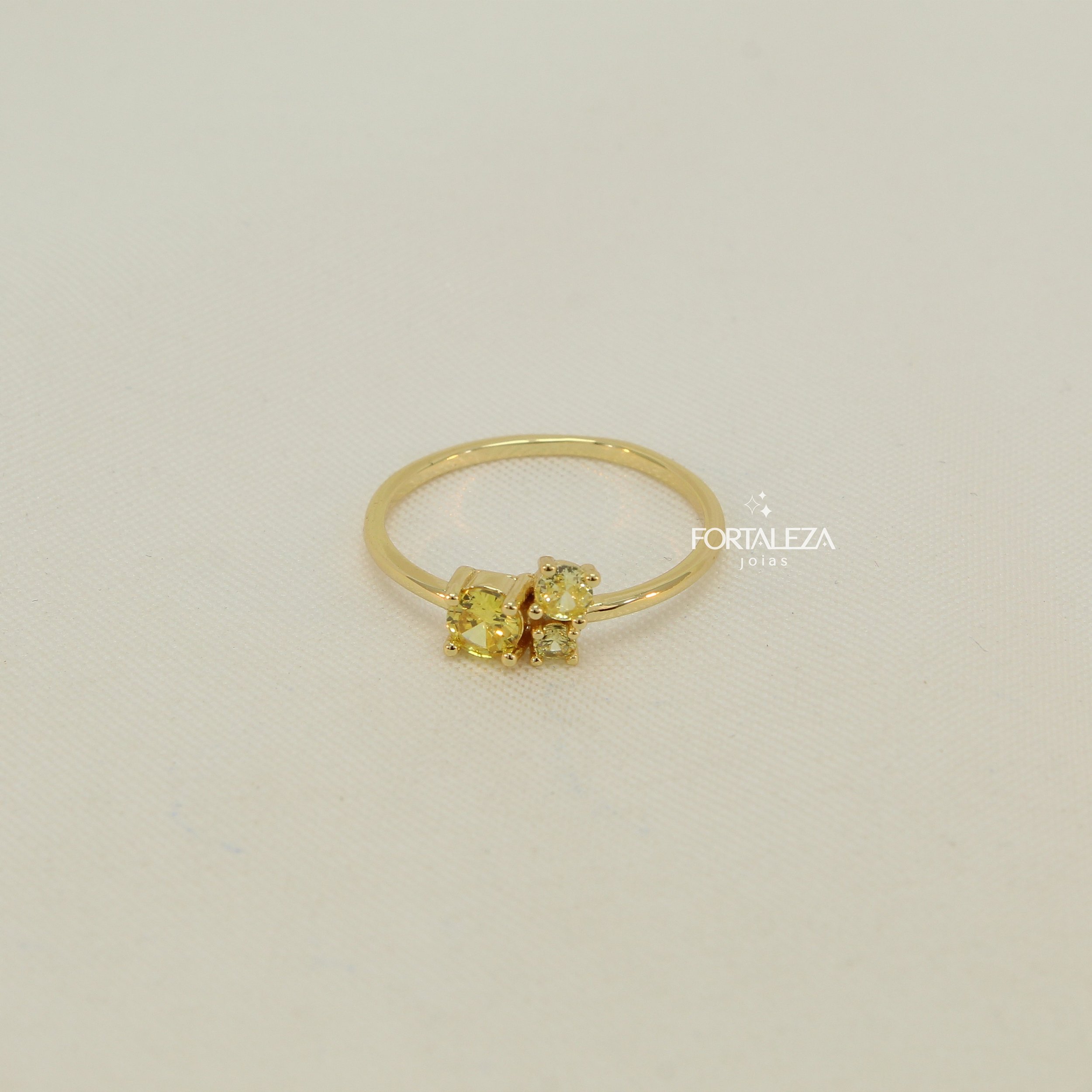 Anel de Três Pedras com Zircônia Safira Amarela Banhado a Ouro 18k