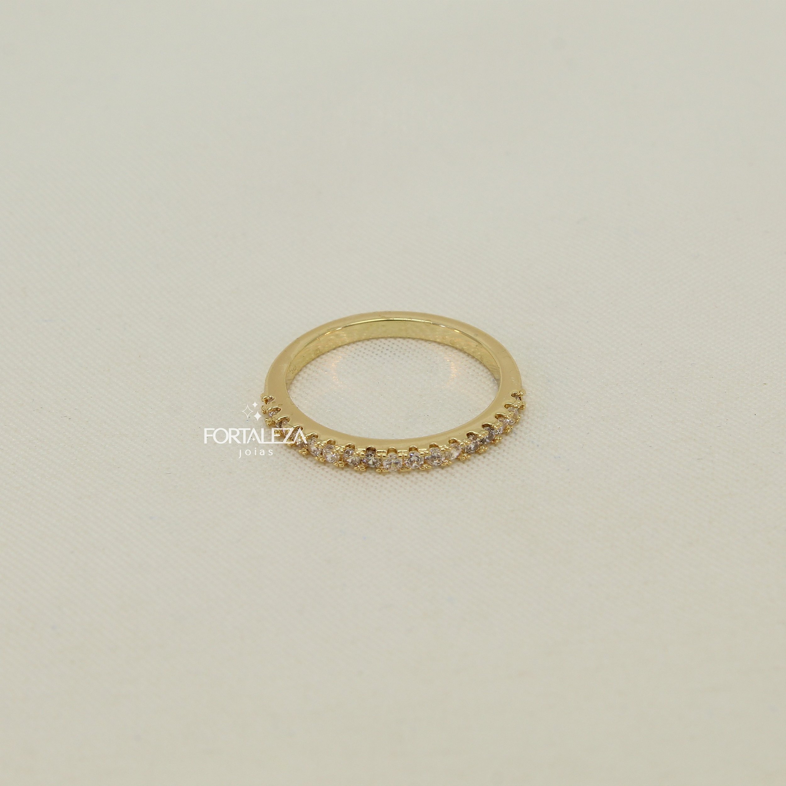Anel Delicado Cravejado com Zircônia Cristal Banhado a Ouro 18k