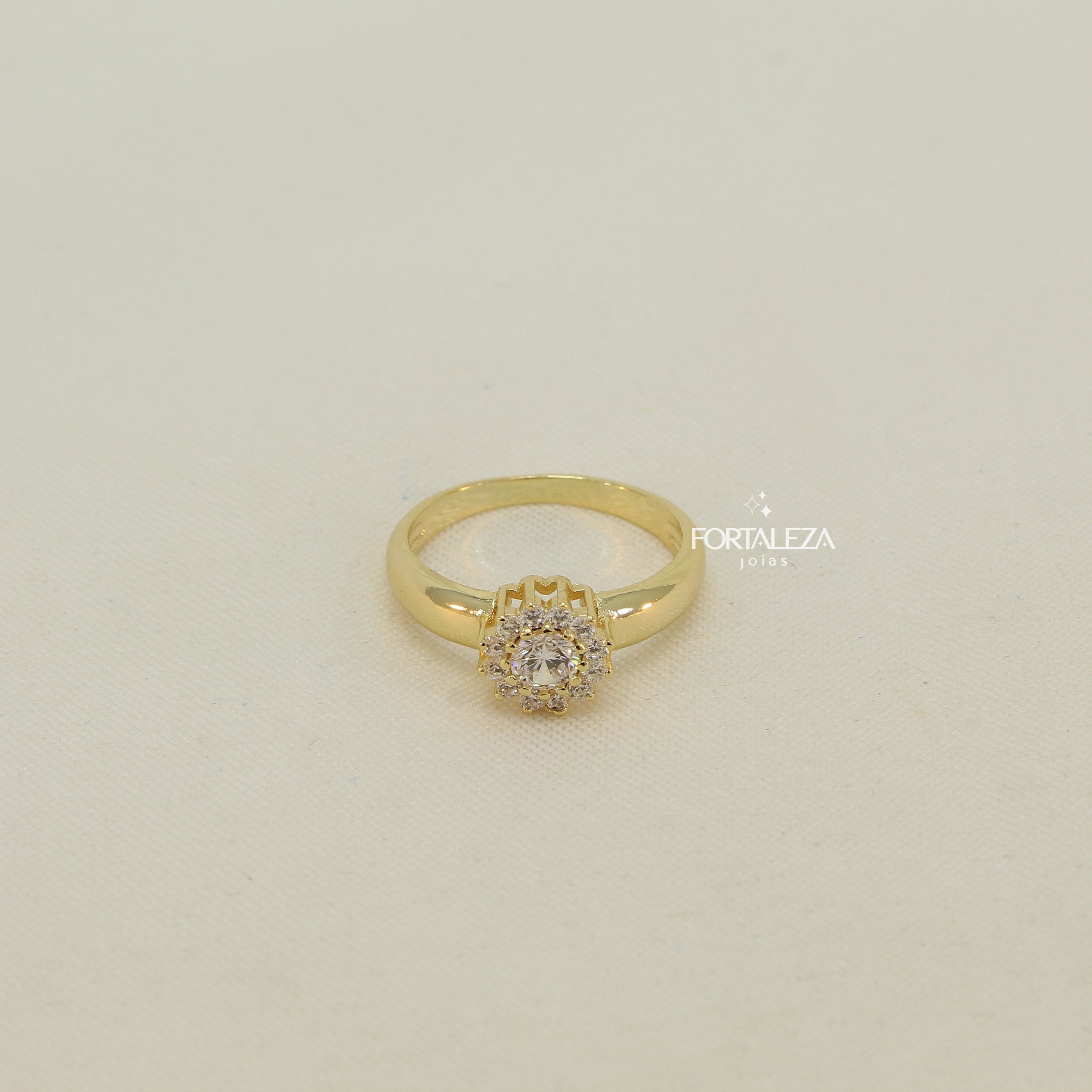 Anel Floral Cravejado com Zircônia Safira Amarela Banhado a Ouro 18k