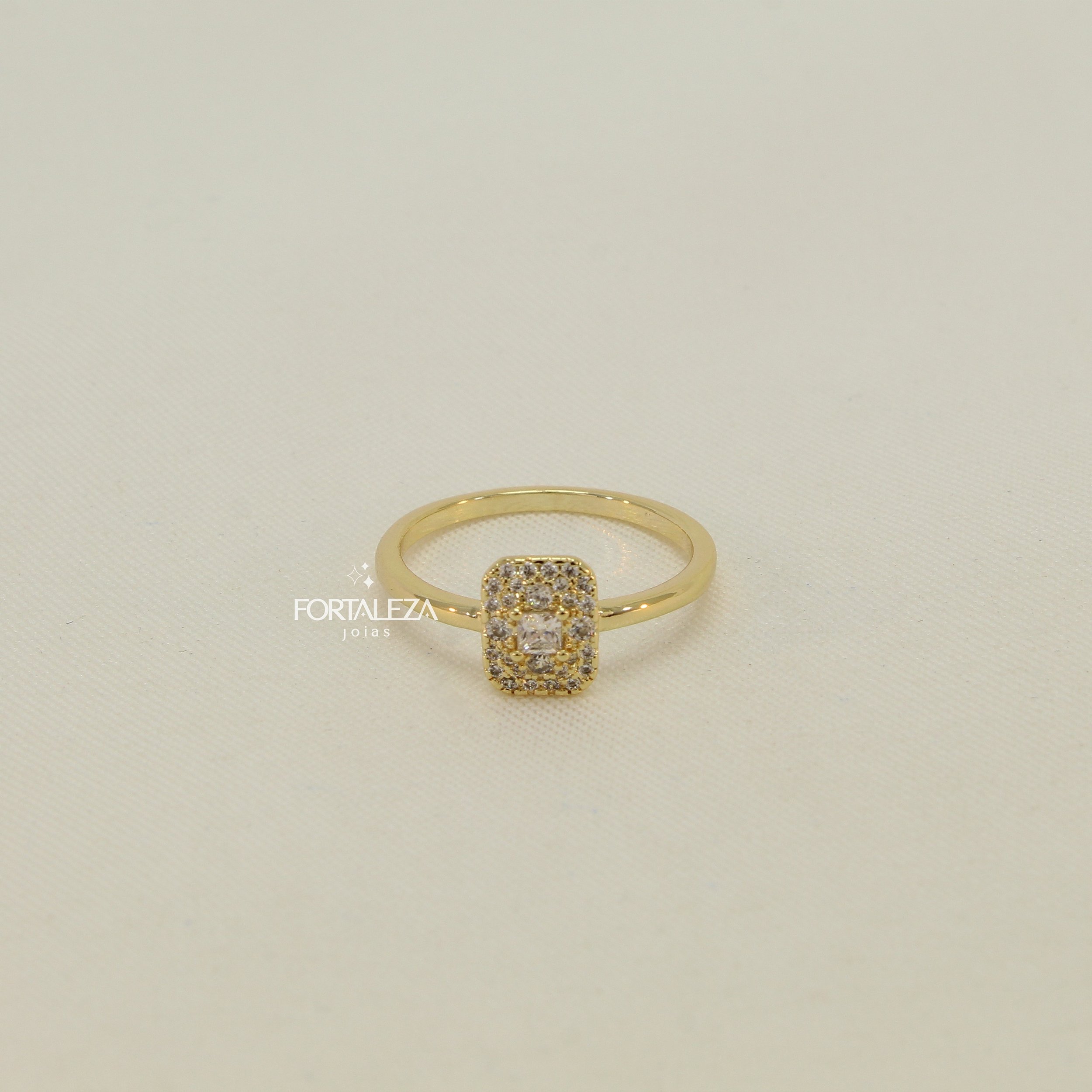 Anel Halo Pavê Cristal Banhado a Ouro 18k