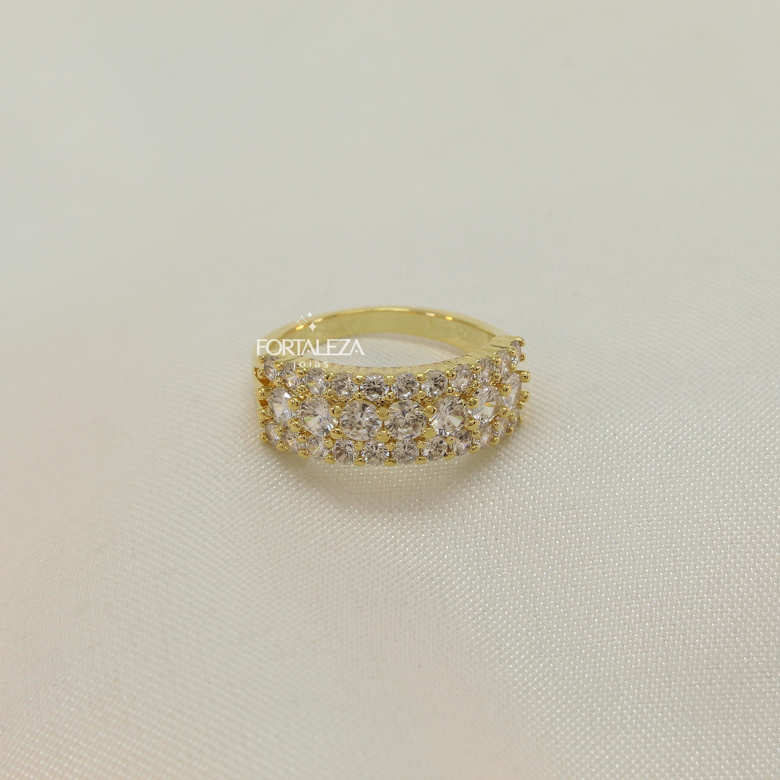 Anel Pavê com Zircônia Cristal Banhado a Ouro 18k