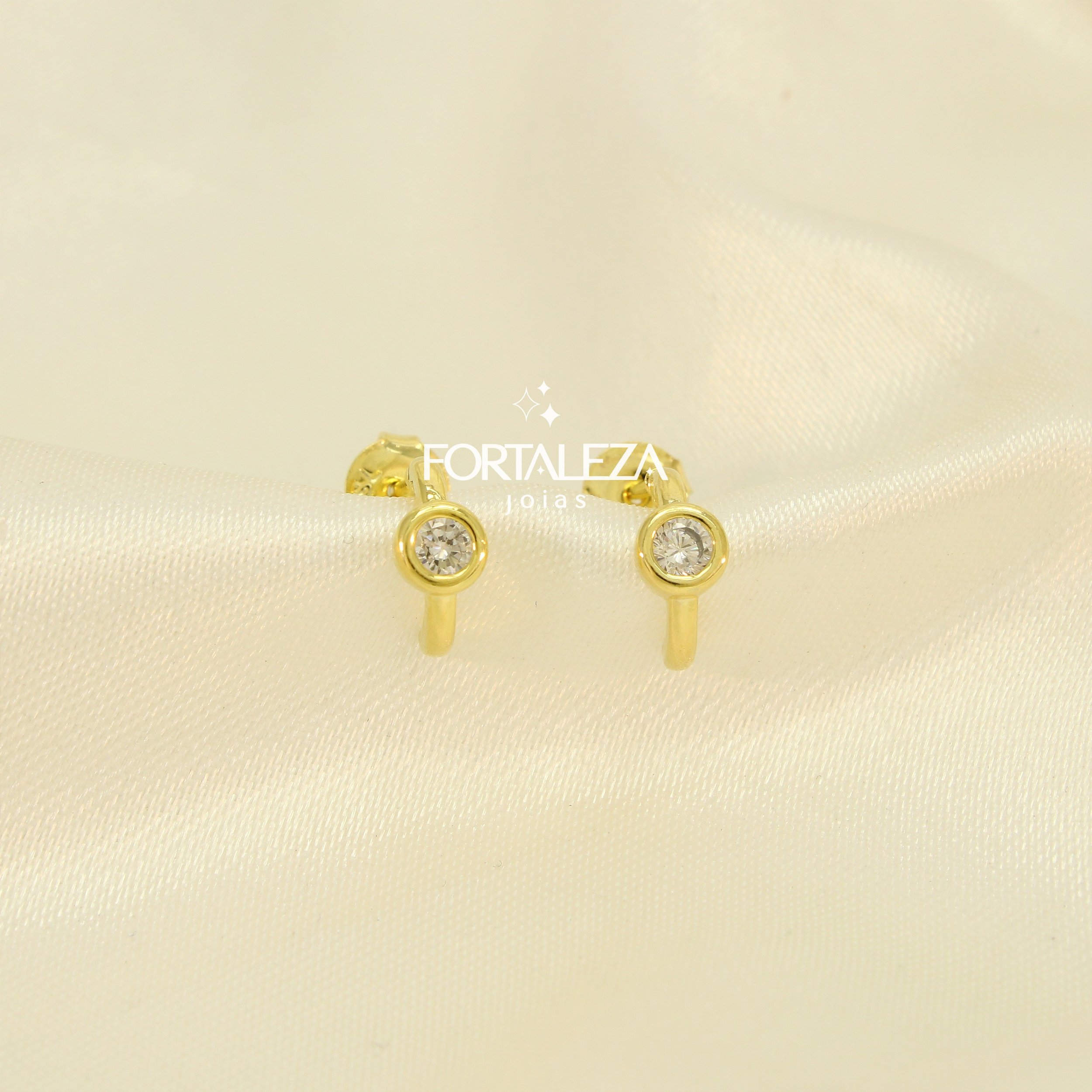 Brinco Meia Argola com Zircônia Cristal Banhado a Ouro 18k