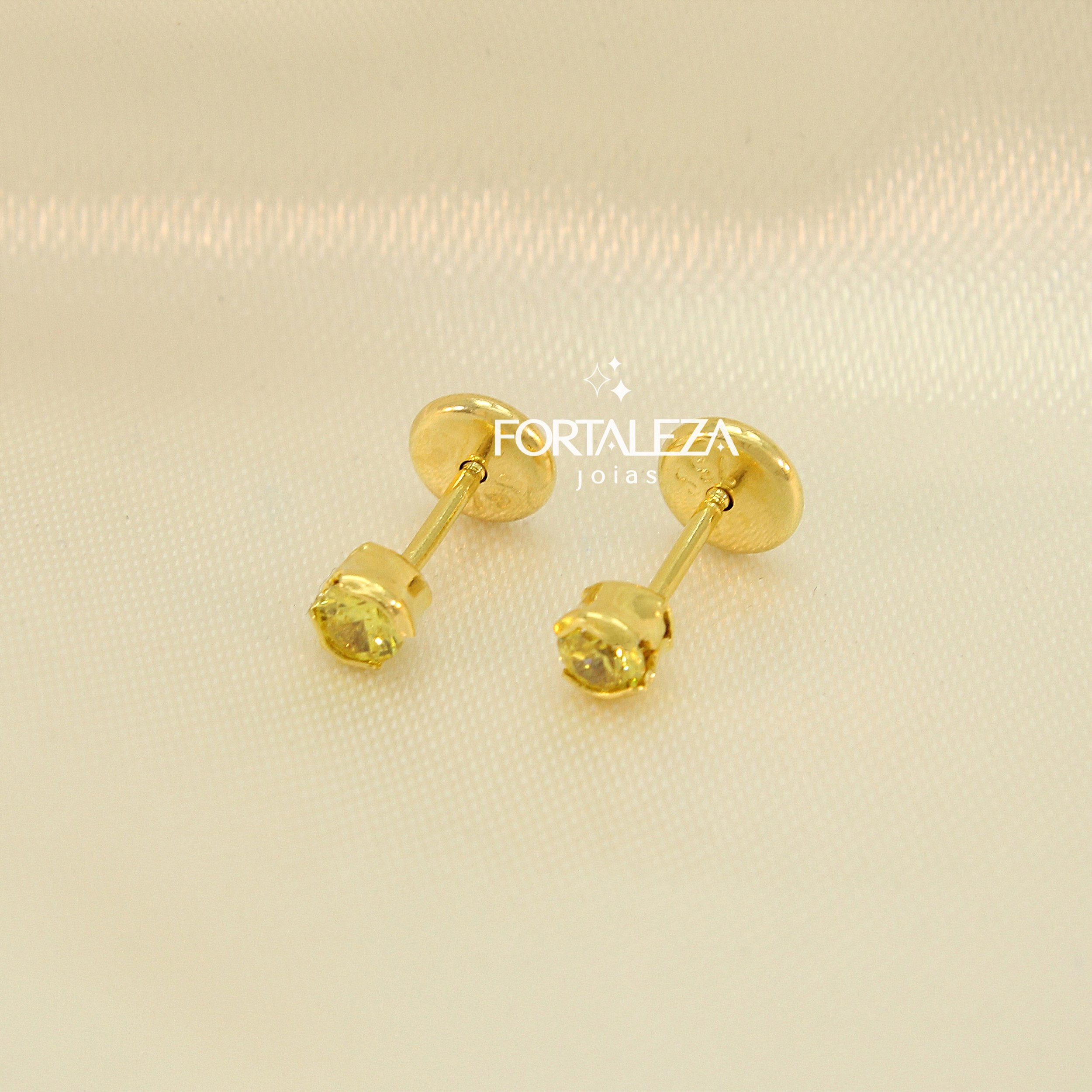 Brinco de Zircônia Safira Amarela Banhado a Ouro 18k