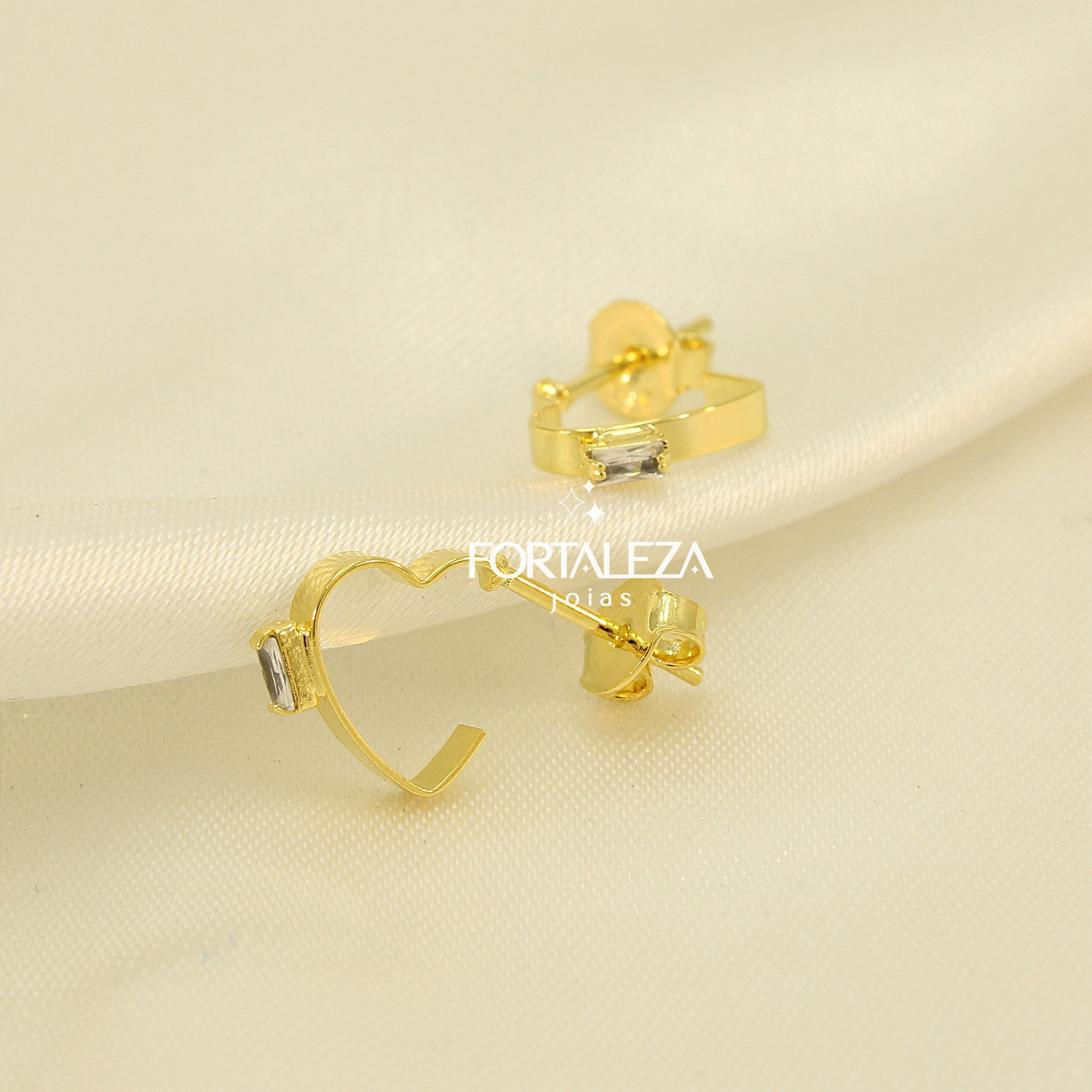 Brinco Argola Coração com Zircônia Cristal Banhado a Ouro 18k