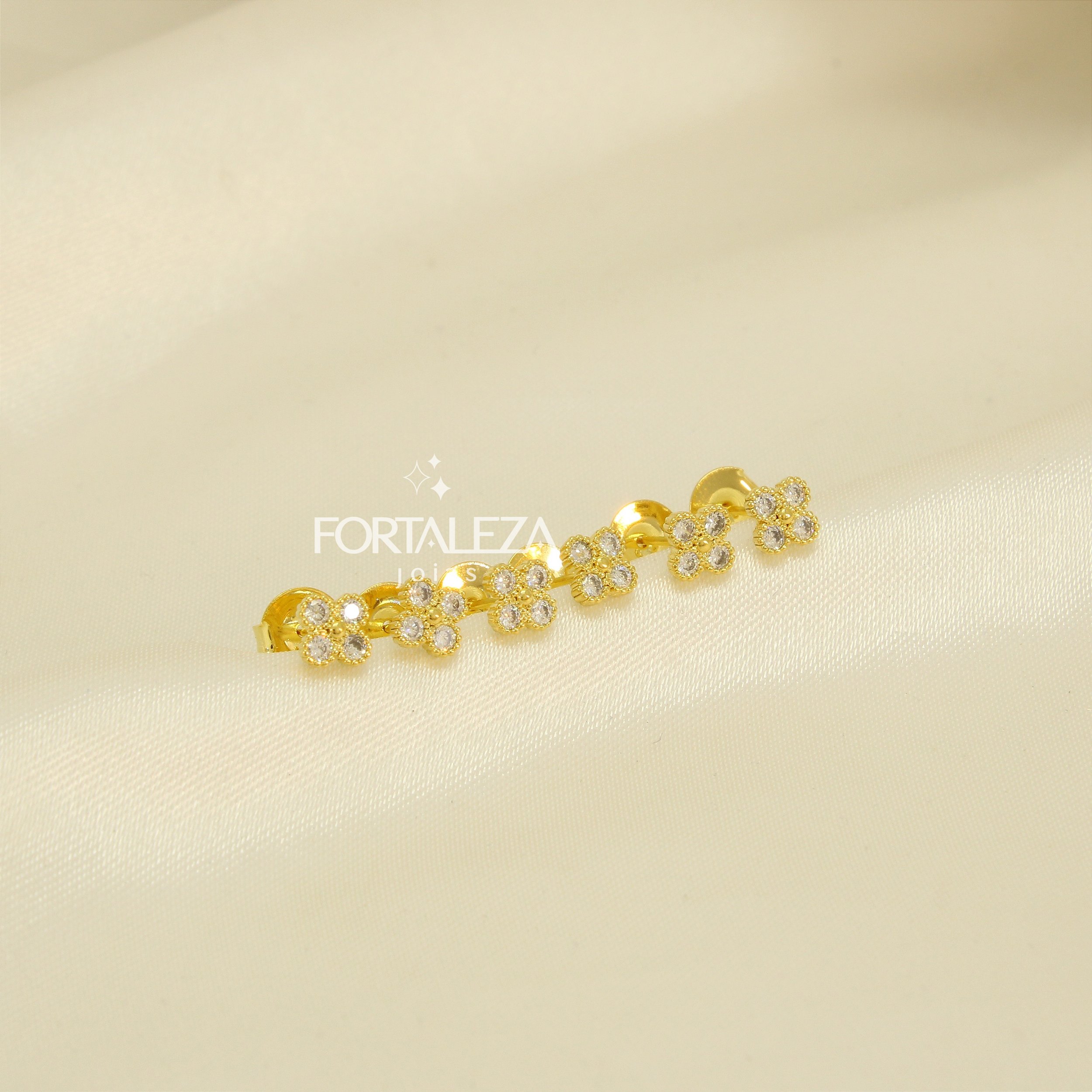 Brinco em Trio Trevo com Zircônia Cristal Banhado a Ouro 18k