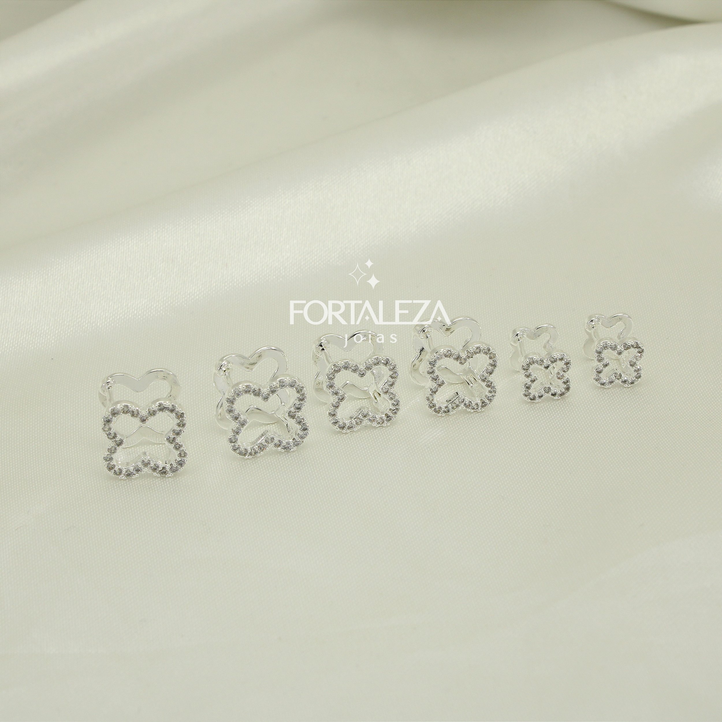 Brinco Argola em Trio Trevo Cravejado em Zircônia Cristal Banhado a Prata 925