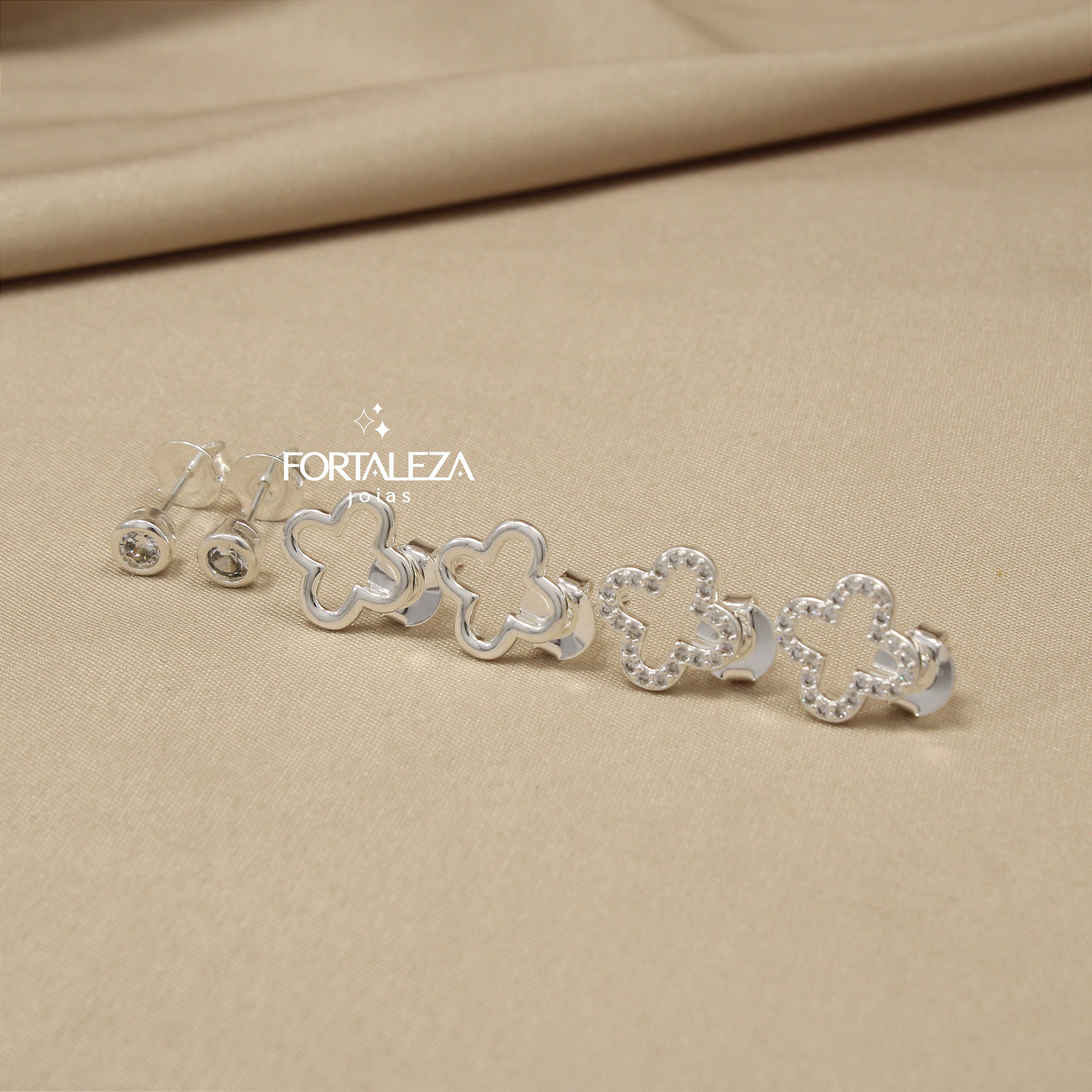 Brinco em Trio de Trevo com Zircônia Cristal Banhado a Prata 925