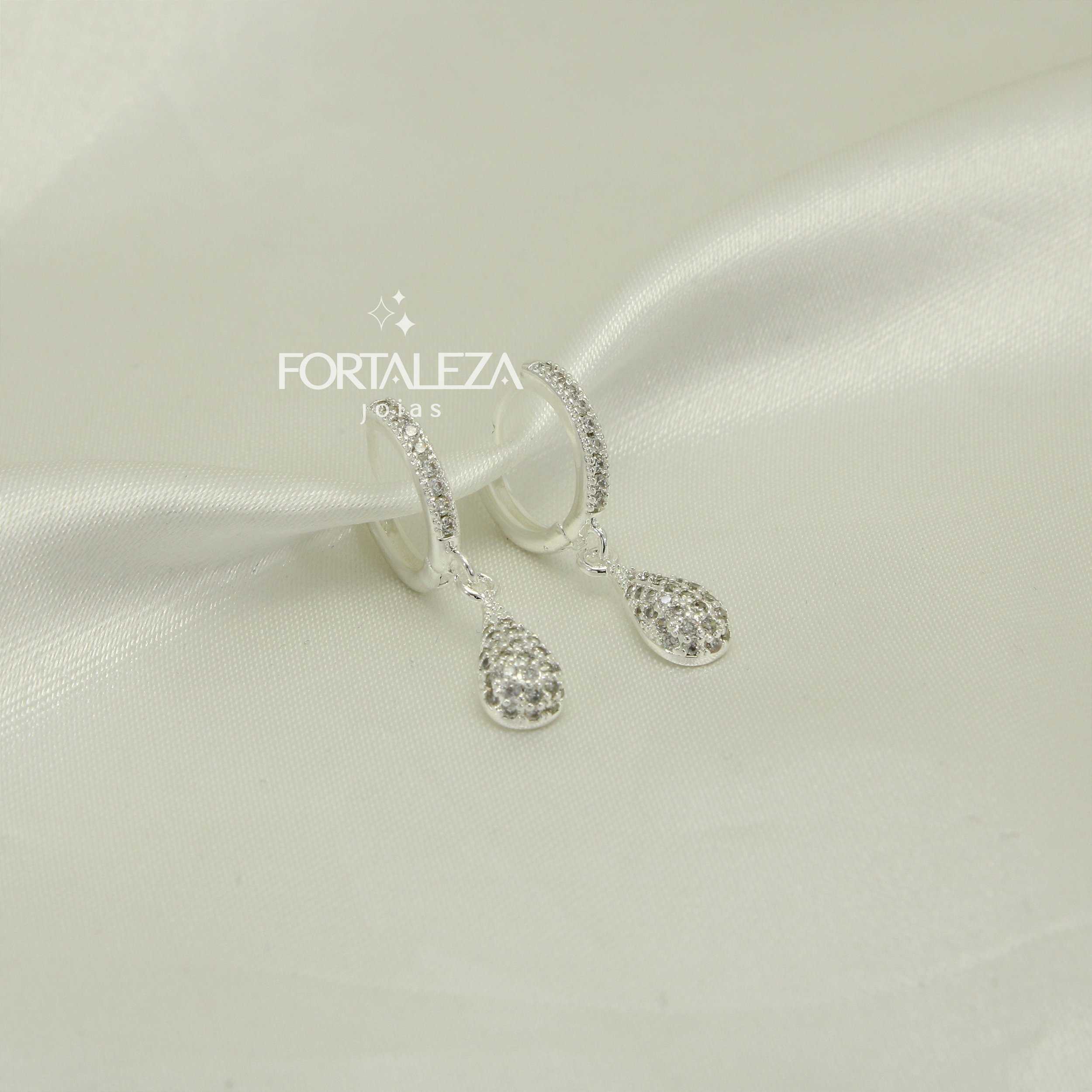 Brinco Argola Gota Cravejada em Zircônia Cristal Banhado a Prata 925