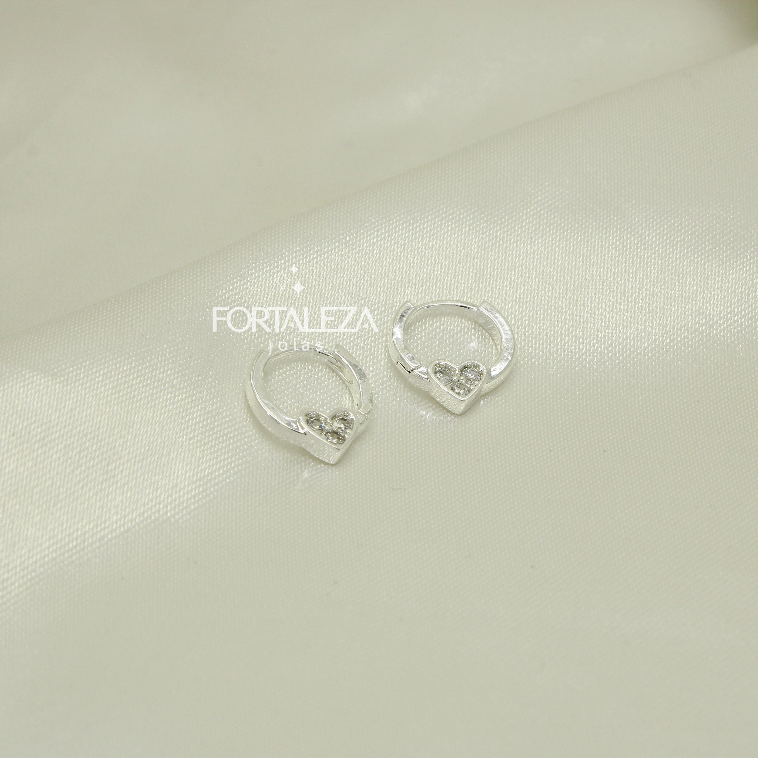 Brinco Argola com Coração Cravejado de Zircônia Cristal Banhado a Prata 925