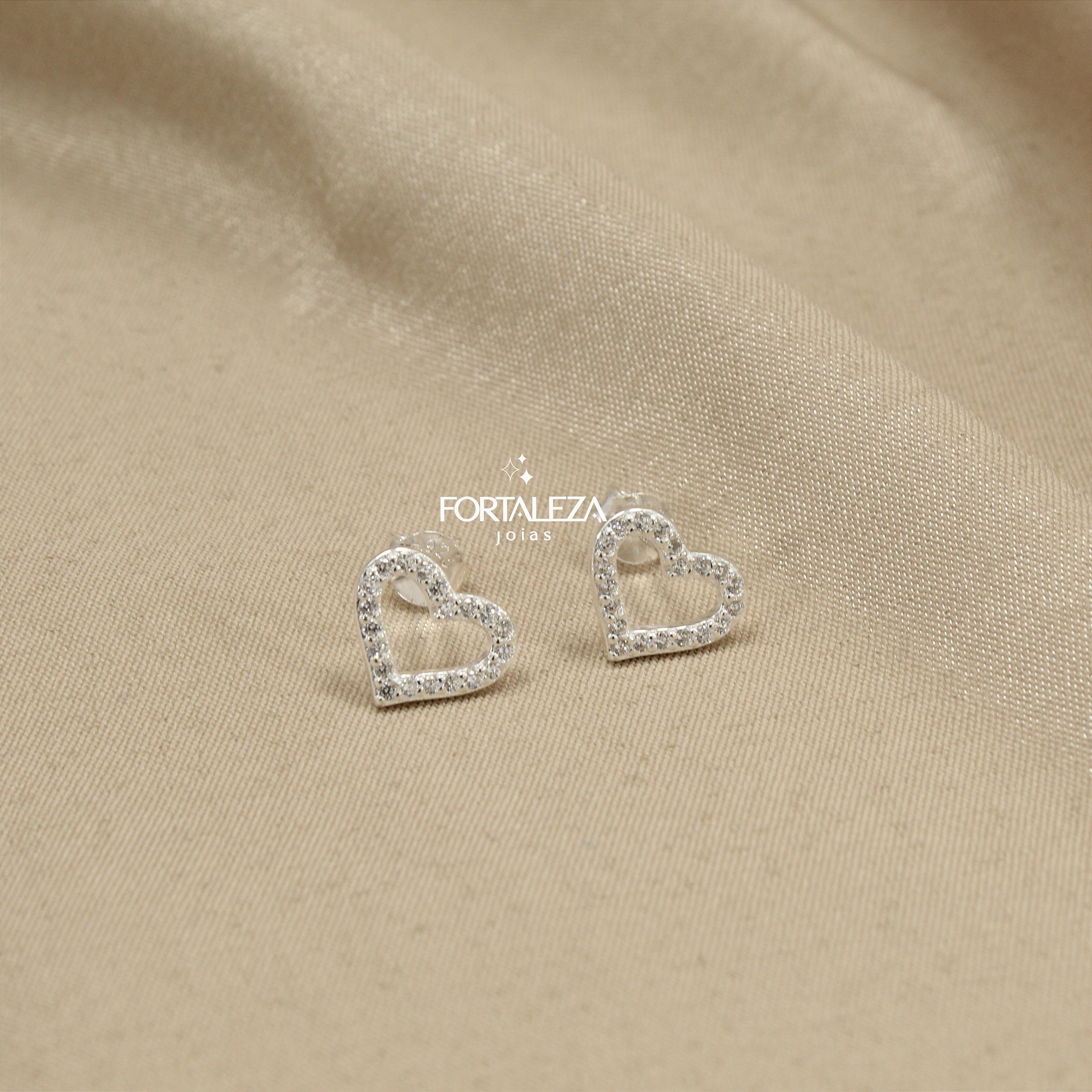 Brinco Coração Vazado e Cravejado com Zircônia Cristal em Prata 925