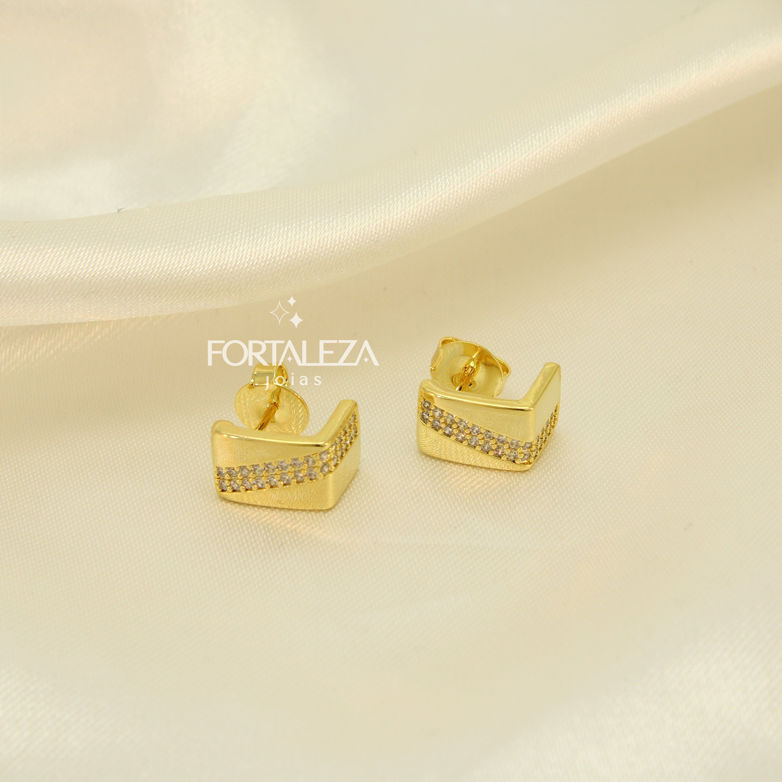 Brinco com Detalhe Cravejado em Zircônia Cristal Banhado a Ouro 18k