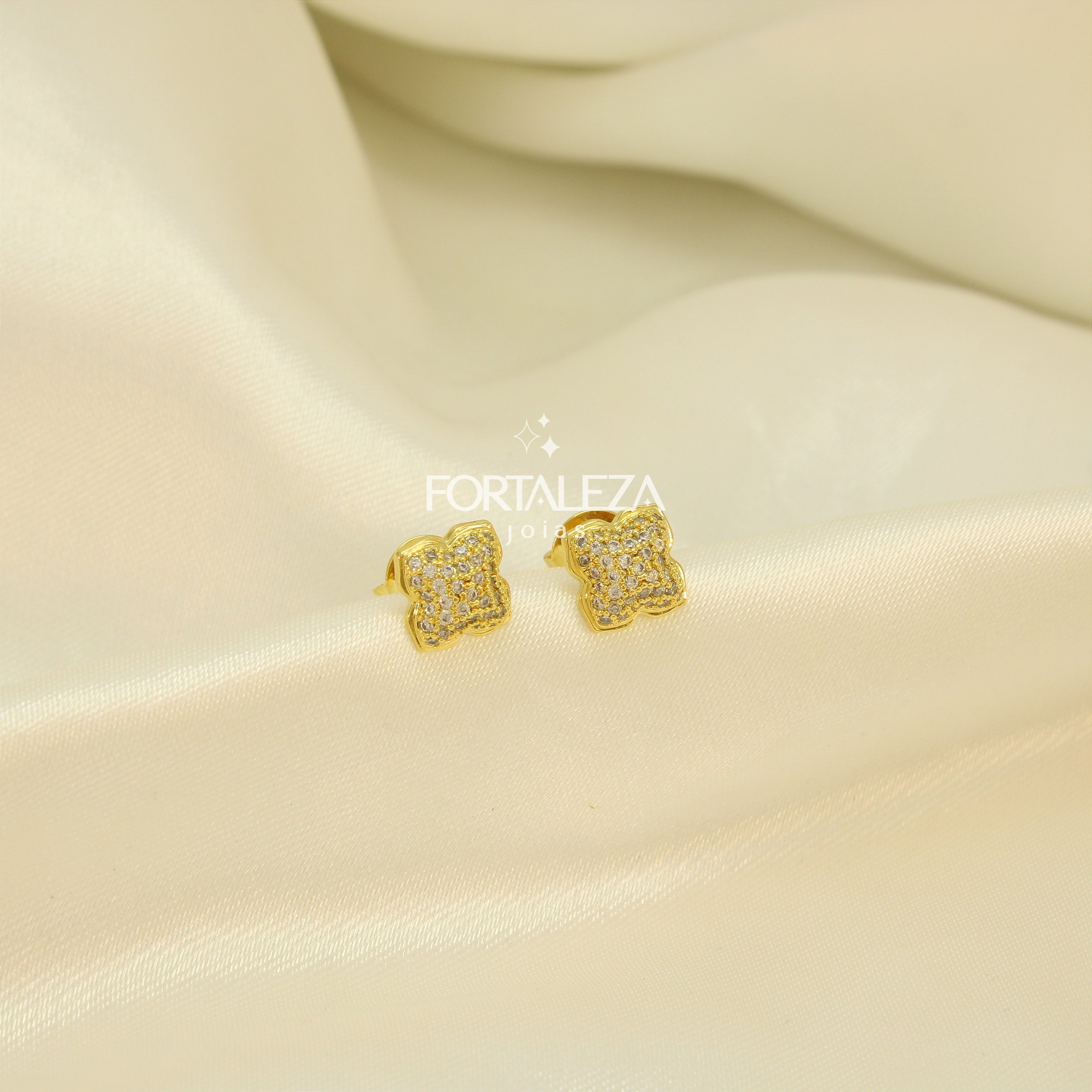 Brinco Flor Cravejado em Zircônia Cristal Banhado a Ouro 18k