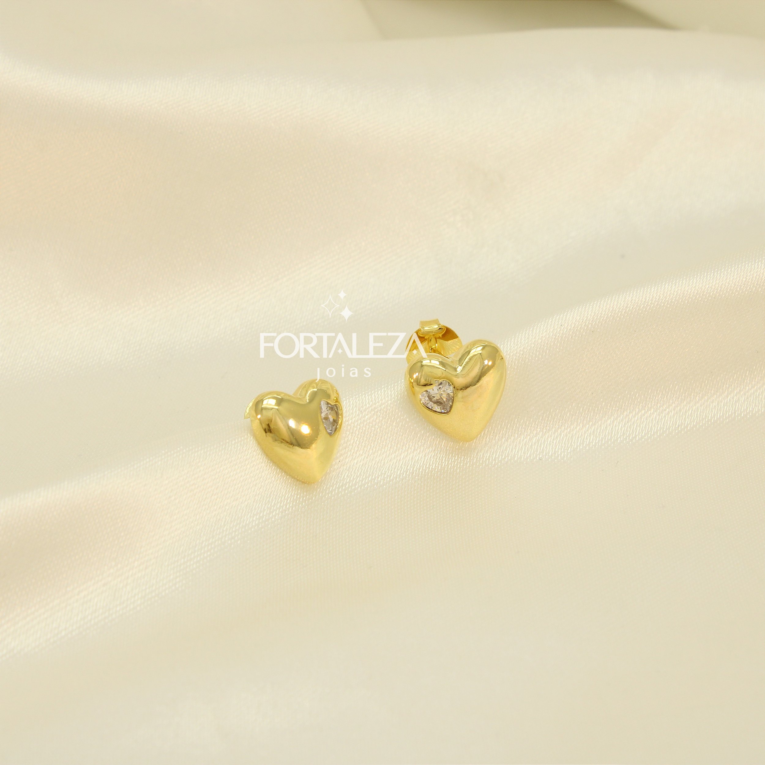 Brinco de Coração com Zircônia Cristal Banhado a Ouro 18k