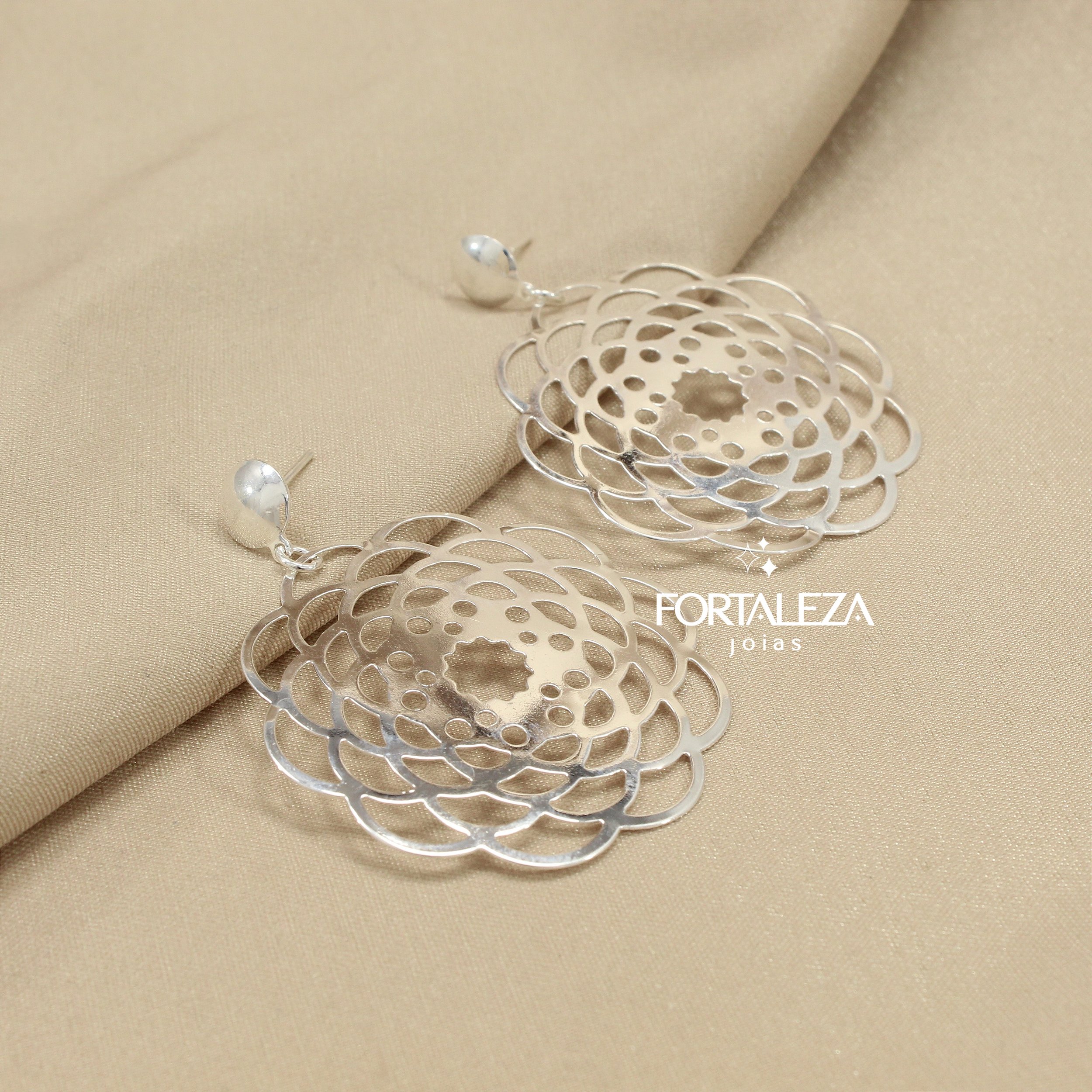 Brinco com Design de Flor Vazada Banhado com 30 Milésimos de Teor de Prata 925 e Finalizado com Verniz de Nanotecnologia