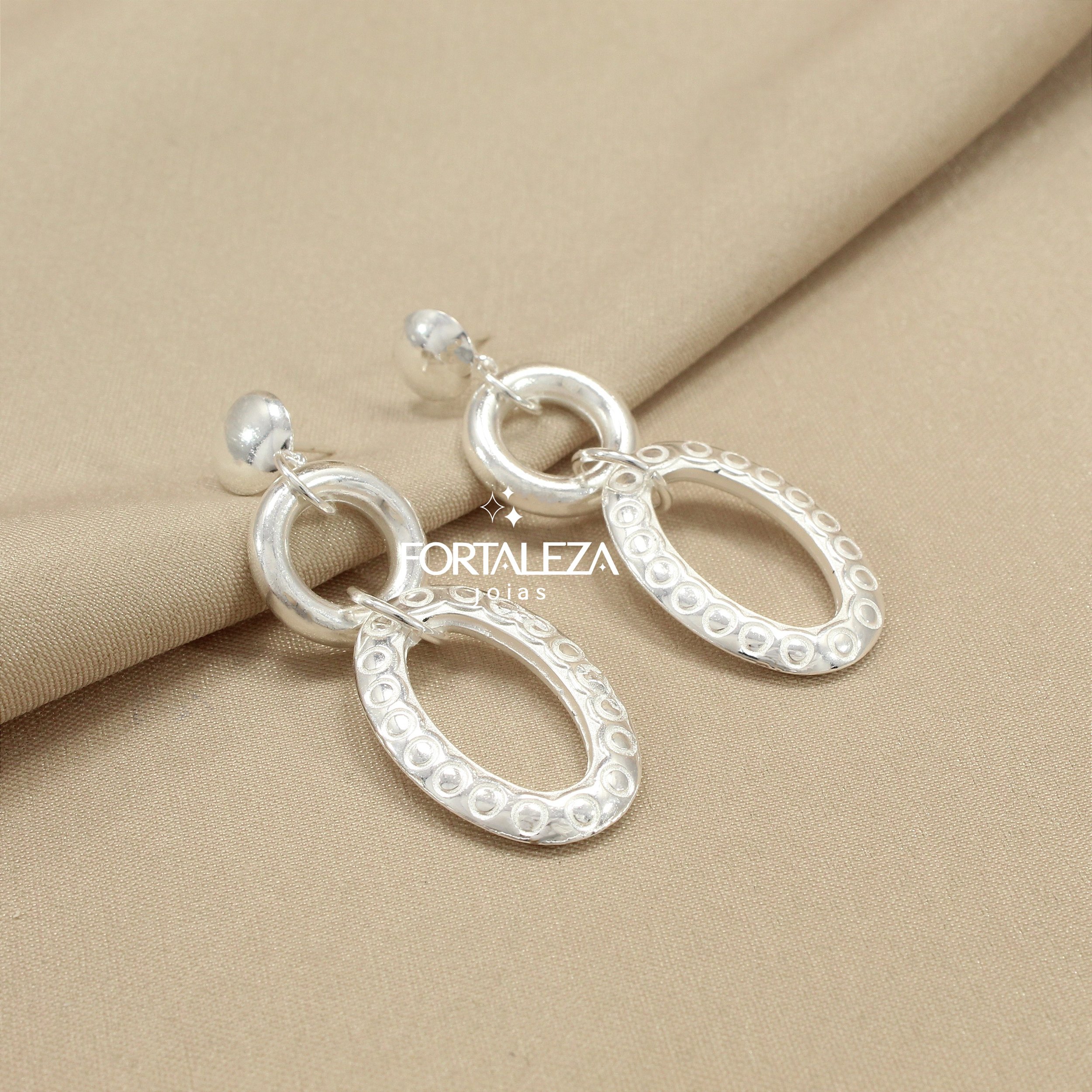 Brinco Oval trabalhado Banhado com 30 Milésimos de Teor de Prata 925 e Finalizado com Verniz de Nanotecnologia