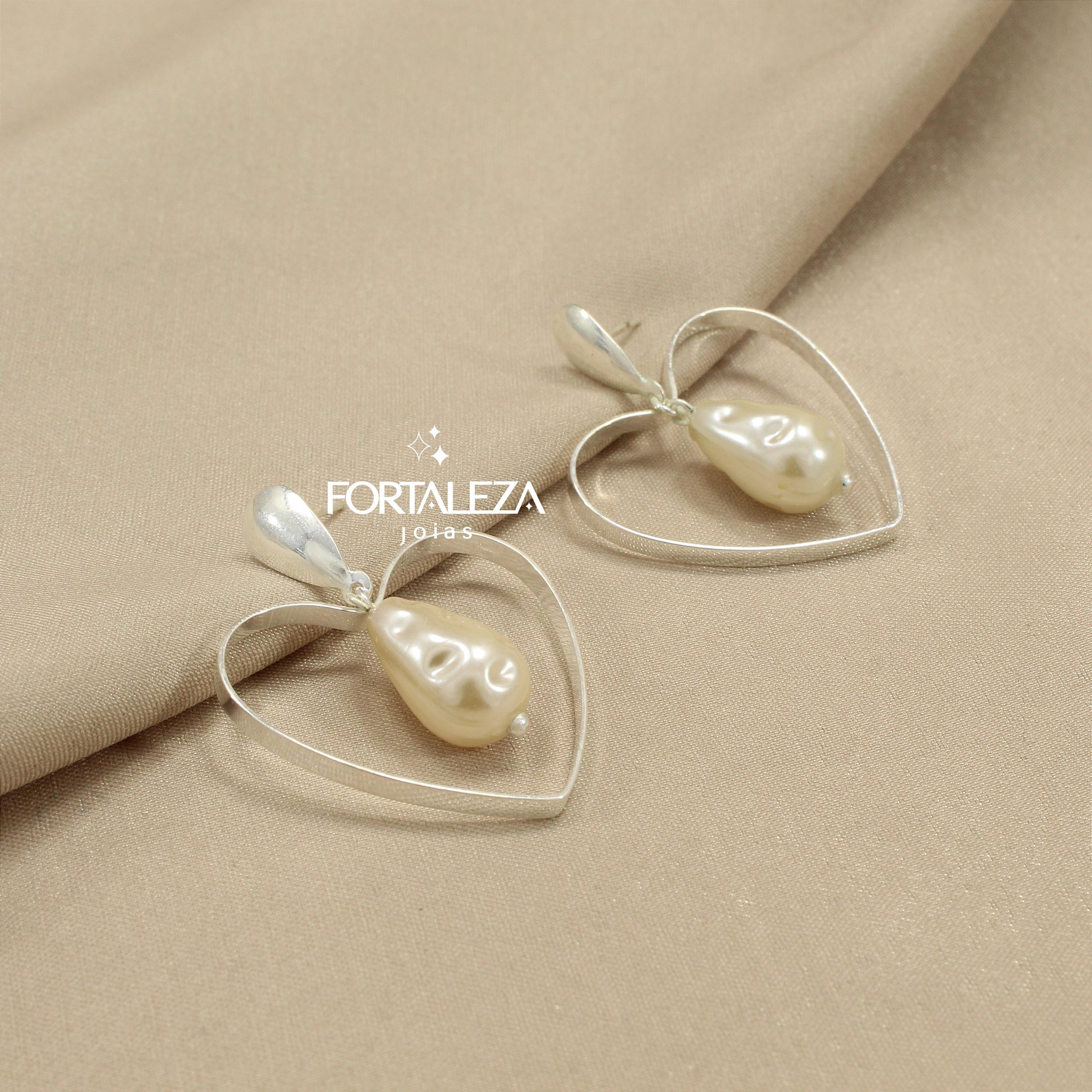 Brinco de Coração com Pérola Barroca Banhado com 30 Milésimos de Teor de Prata 925 e Finalizado com Verniz de Nanotecnologia