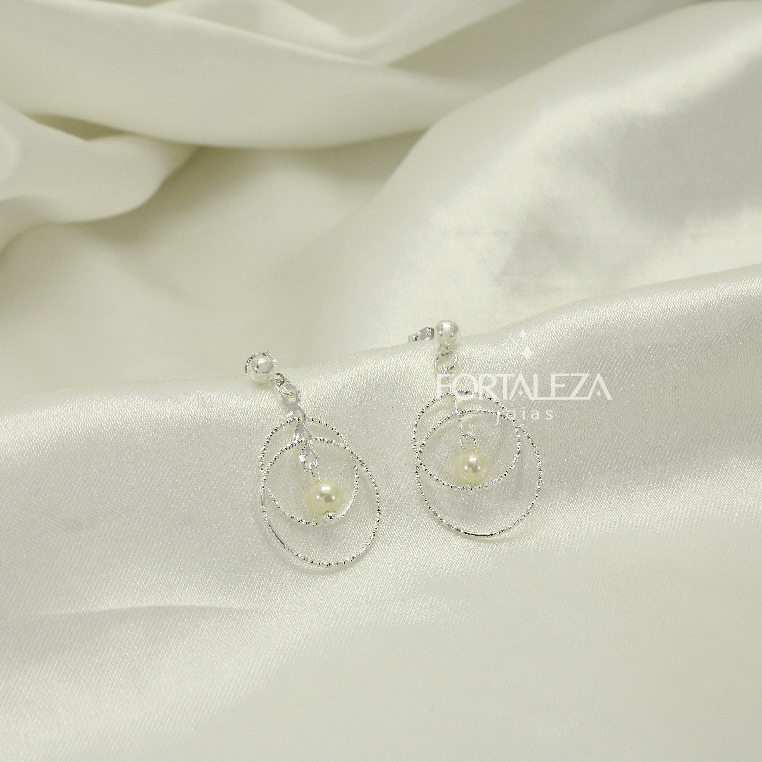 Brinco Aro Texturizado e Detalhe de Pérola Banhado com 30 Milésimos de Teor de Prata 925 e Finalizado com Verniz de Nanotecnologia
