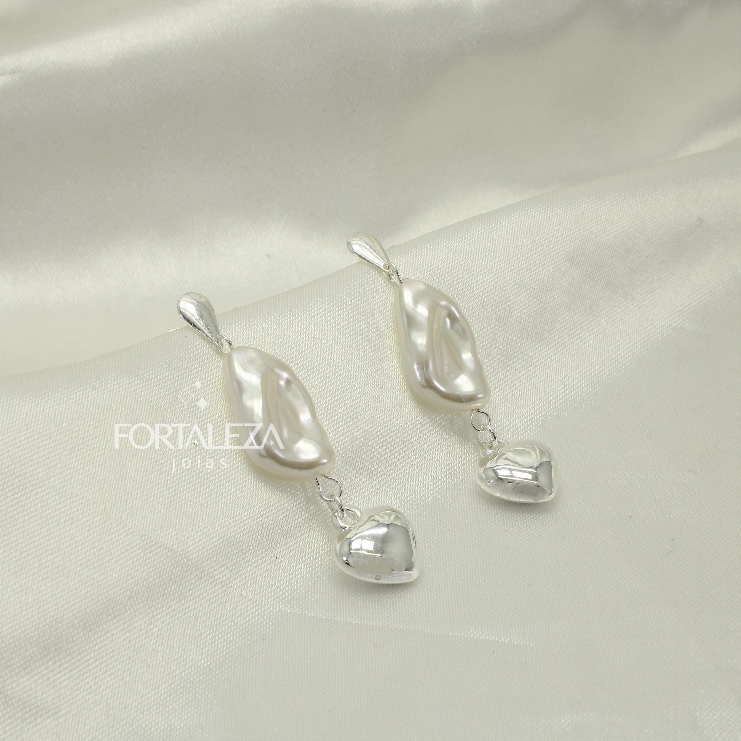 Brinco de Pérola Barroca com Coração Banhado com 30 Milésimos de Teor de Prata 925 e Finalizado com Verniz de Nanotecnologia