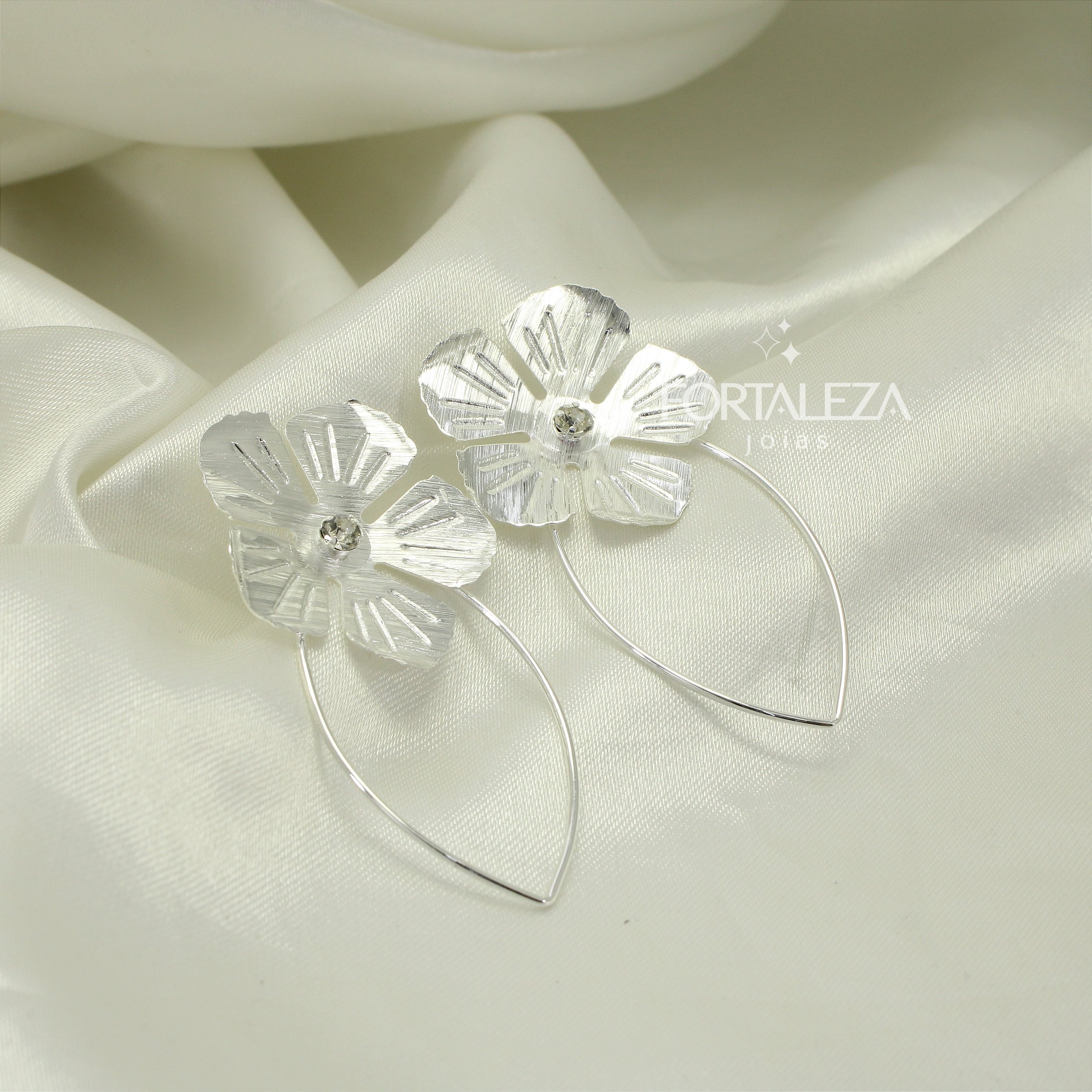 Brinco Flor com Detalhe de Zircônia Banhado com 30 Milésimos de Teor de Prata 925 e Finalizado com Verniz de Nanotecnologia