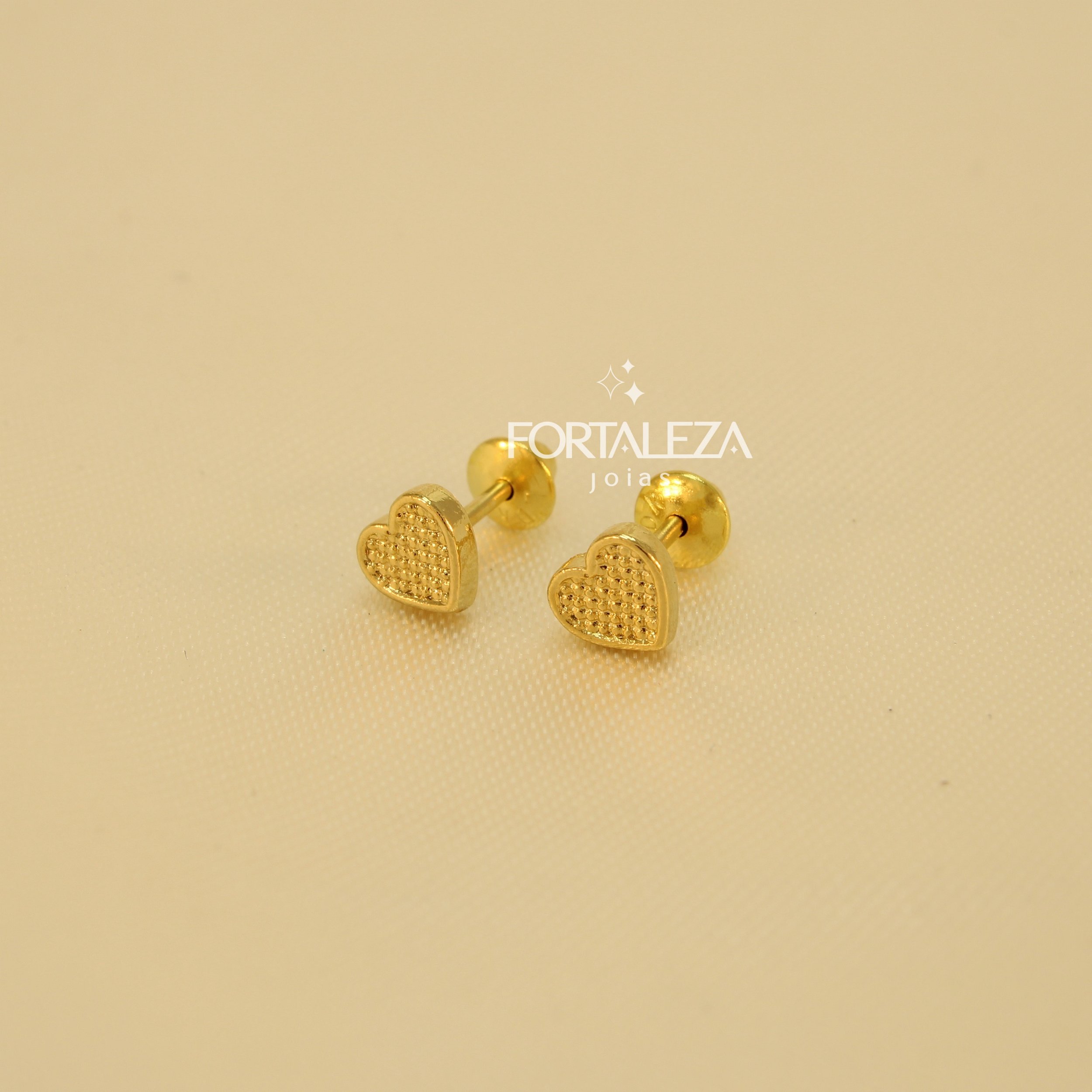 Brinco de Coração Texturizado Banhado a Ouro 18k