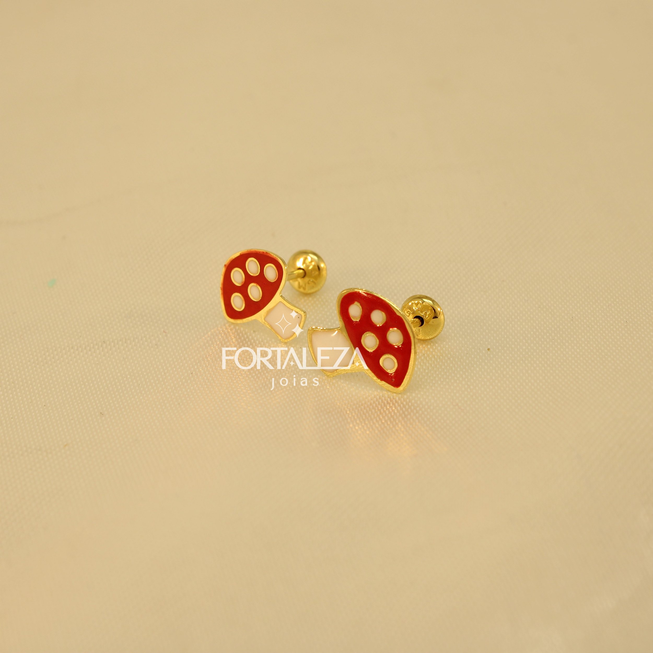Brinco Cogumelo Resinado Banhado a Ouro 18k