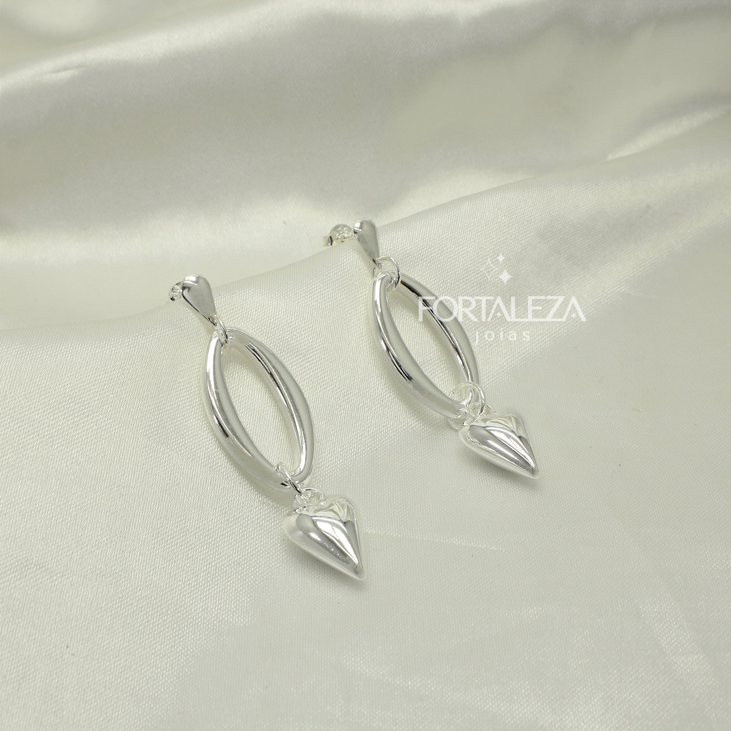 Brinco Oval com Coração Polido Banhado com 30 Milésimos de Teor de Prata 925 e Finalizado com Verniz de Nanotecnologia