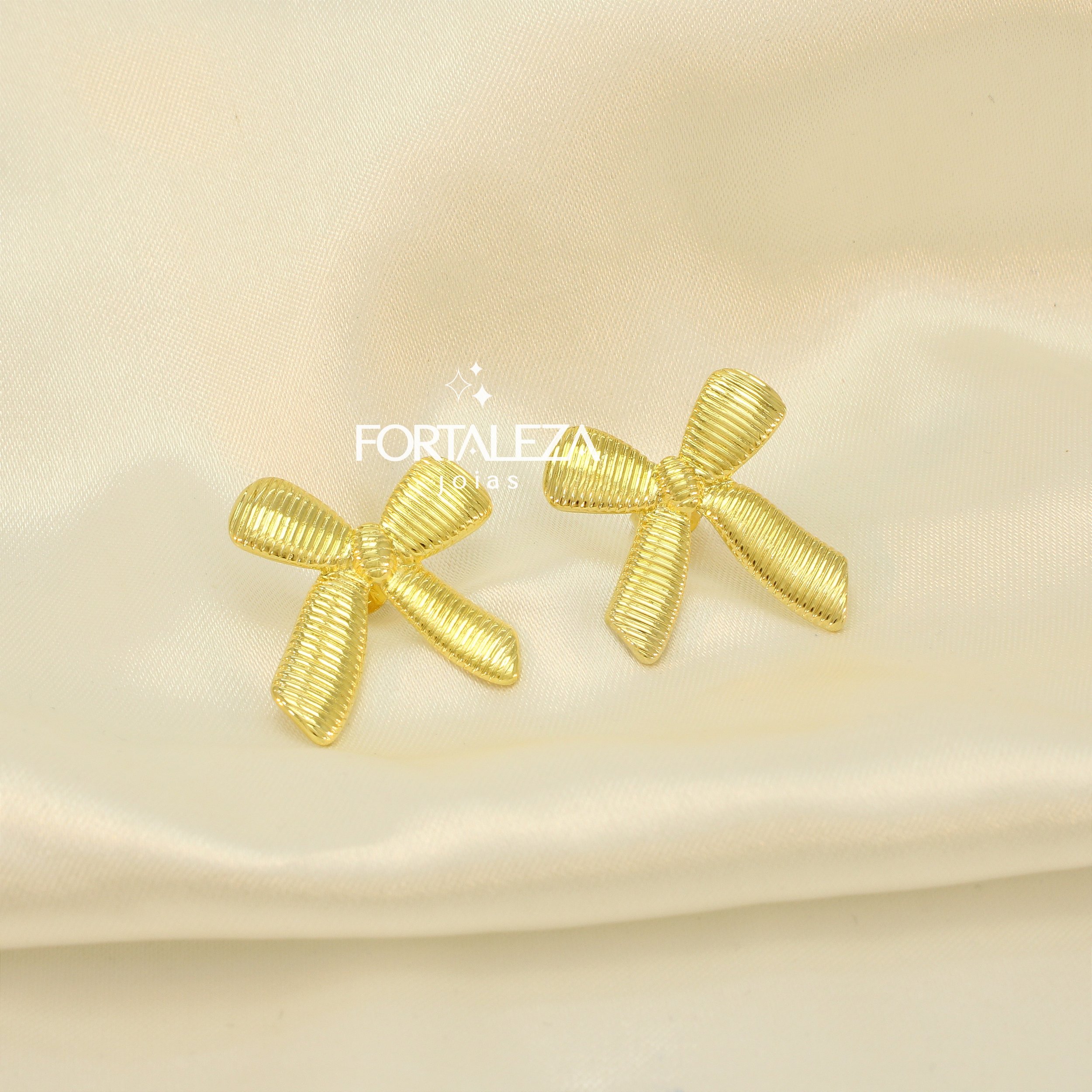 Brinco de Laço Texturizado Banhado a Ouro 18k
