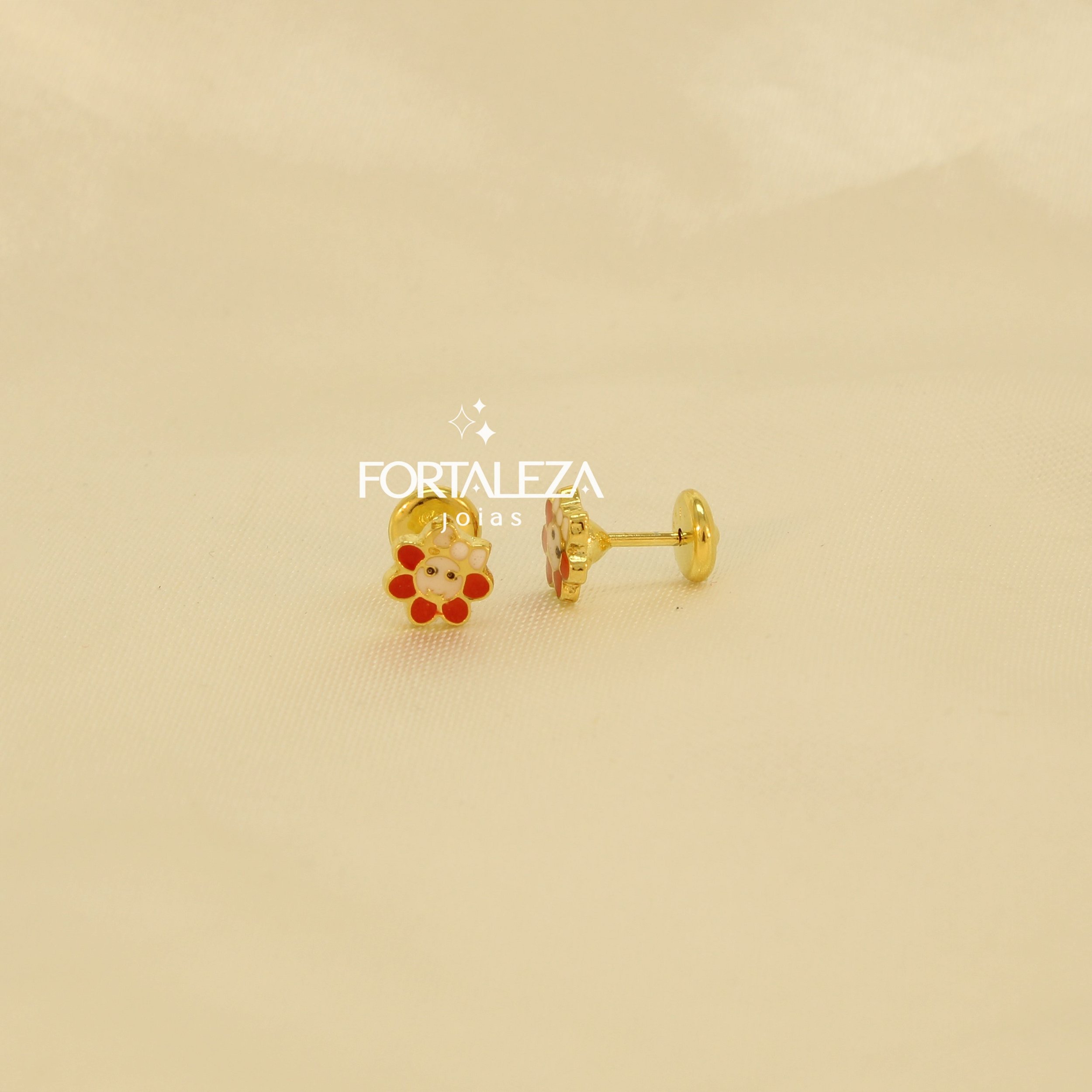 Brinco Flor com Lacinho Resinado Banhado a Ouro 18k