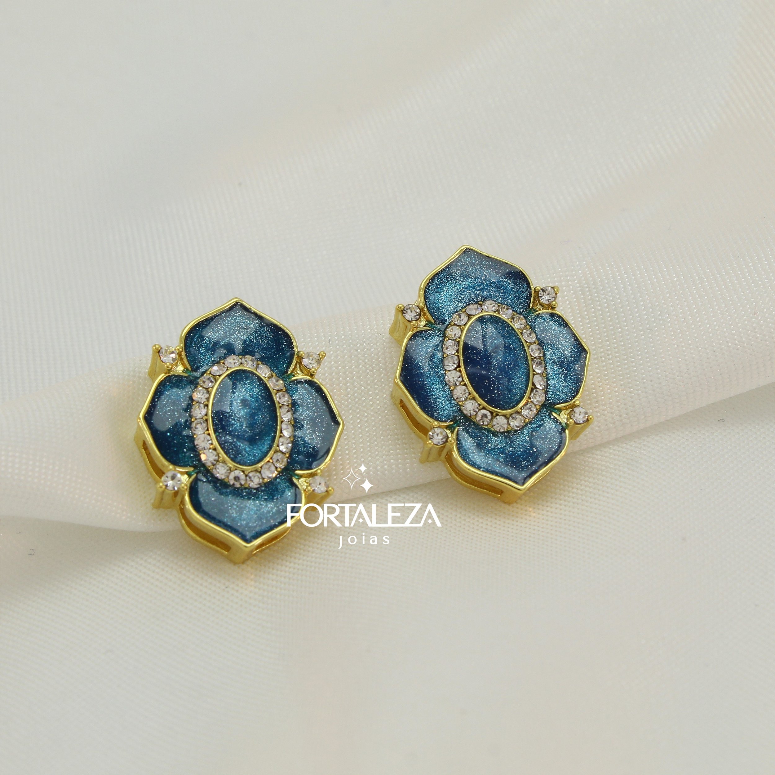 Brinco Flor com Resina e Zircônia Cristal Banhado a Ouro 18k